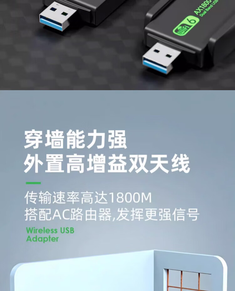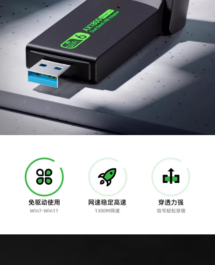 Jingdong entrega tarjeta de red inalámbrica escritorio dedicado wifi6 receptor sin controlador Gigabit USB computadora de escritorio transmisor 5G receptor de señal de alta velocidad WIFI5-650M antena dual mejorada-señal fuerte