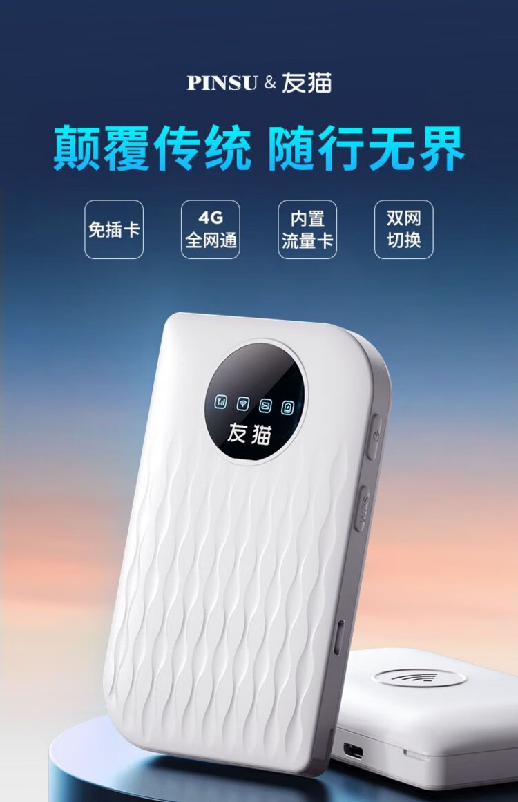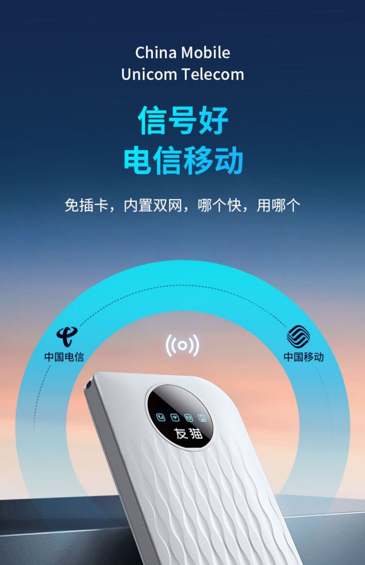 Youmao card-free portable wifi mobile unlimited network portable official wireless accompanying wi-fi traffic network card 2025 new notebook network card 4g hotspot routing at any time Upgraded version Pro-dual core dual antenna + Zhanrui chip 1500G/month*12 months