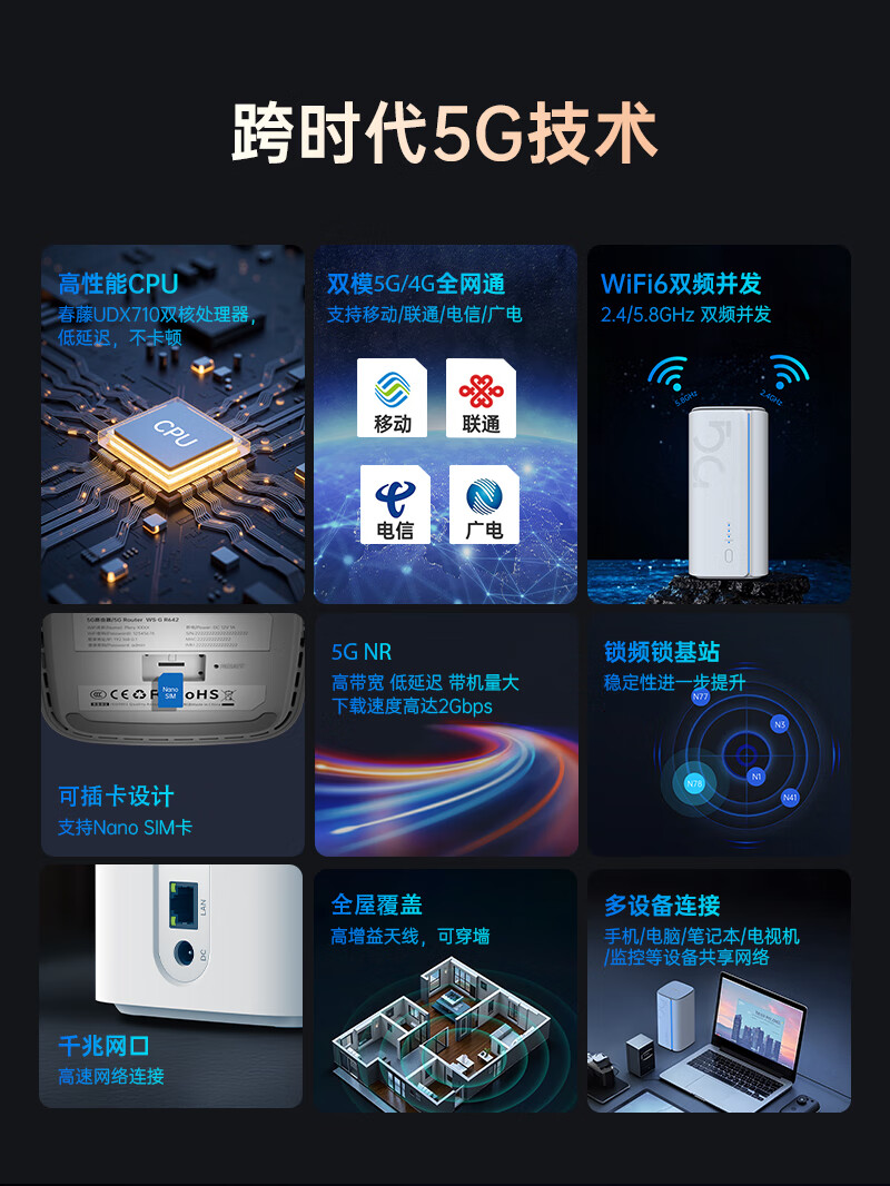 PLERY R642 Full Netcom 5G CPE Gigabit Mobile Router Tarjeta enchufable SIM para acceso a Internet 5G/4G Wifi inalámbrico6 5GNR Agregación de operadores 2025 Nuevo producto Versión de tarjeta enchufable 5G China Unicom/Telecom/Mobile/Radio y Televisión Full Netcom