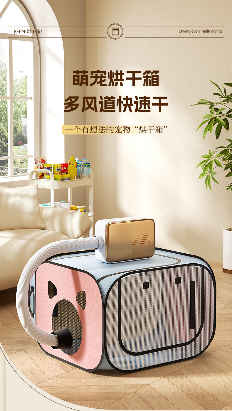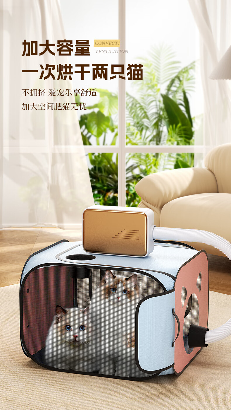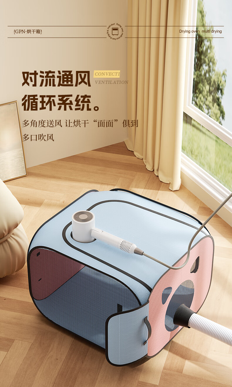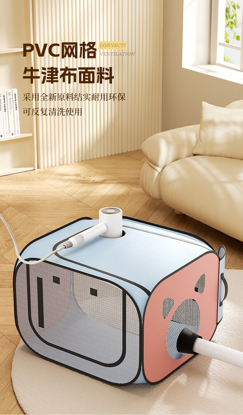 Cat drying box, blow drying, pet bathing, household cat washing hair dryer, small folding hair drying tool for dogs, pink and blue drying box + silent dryer