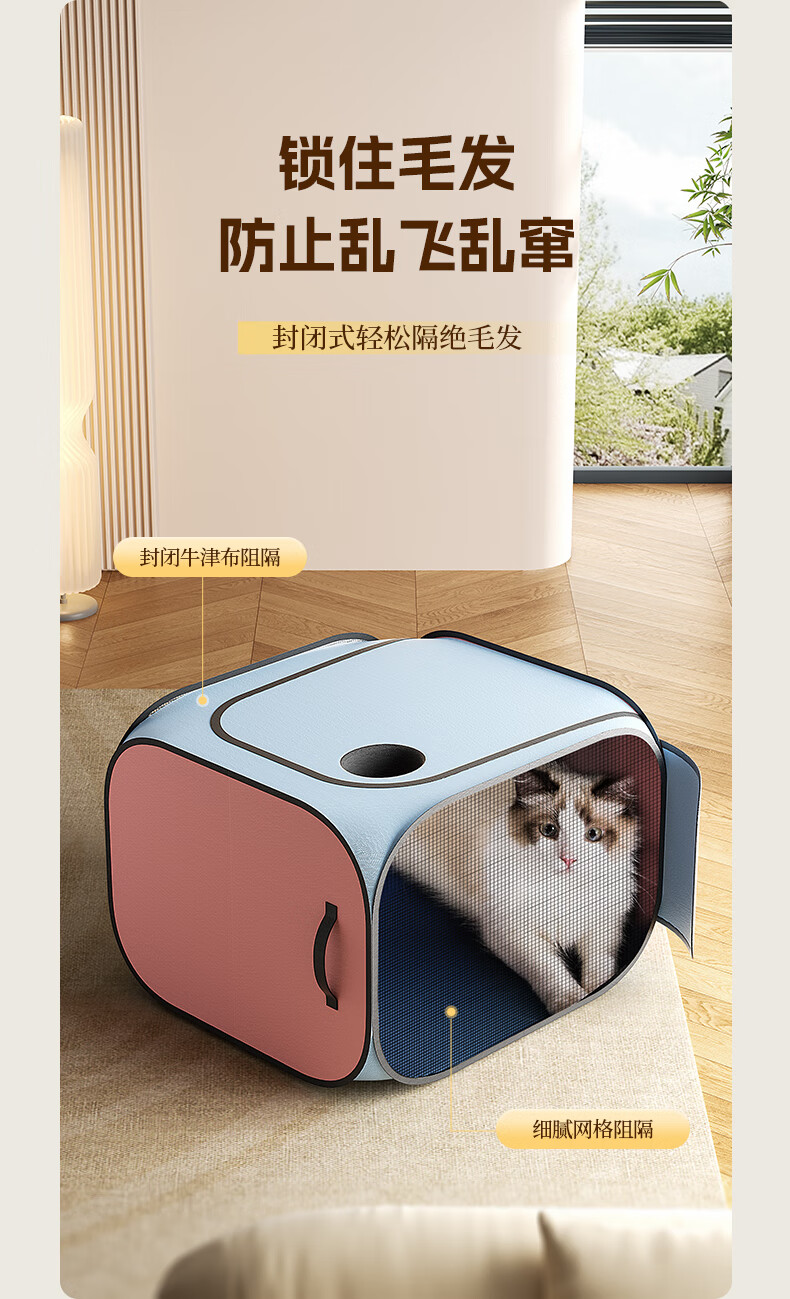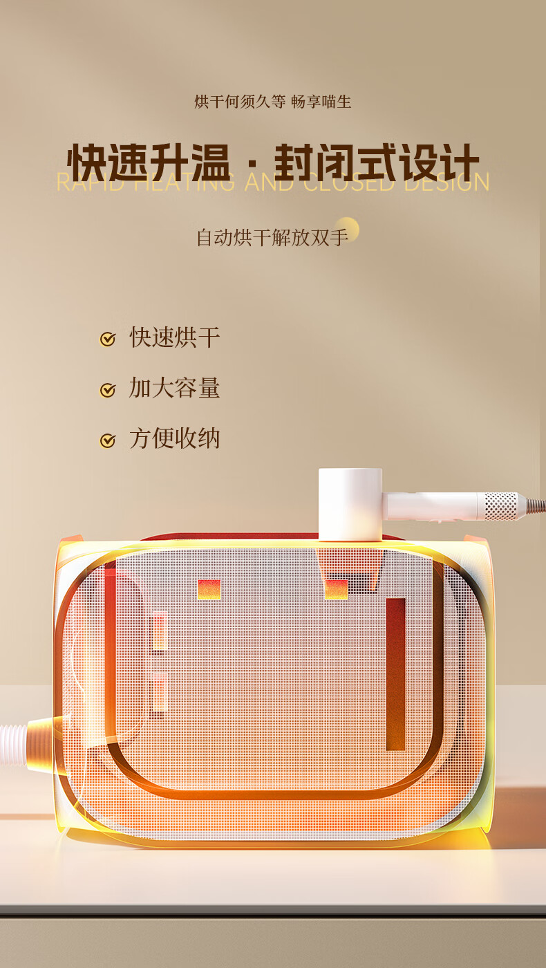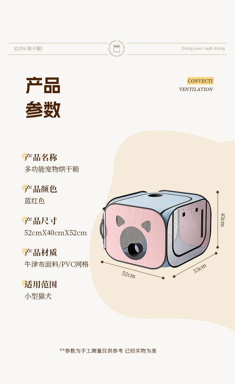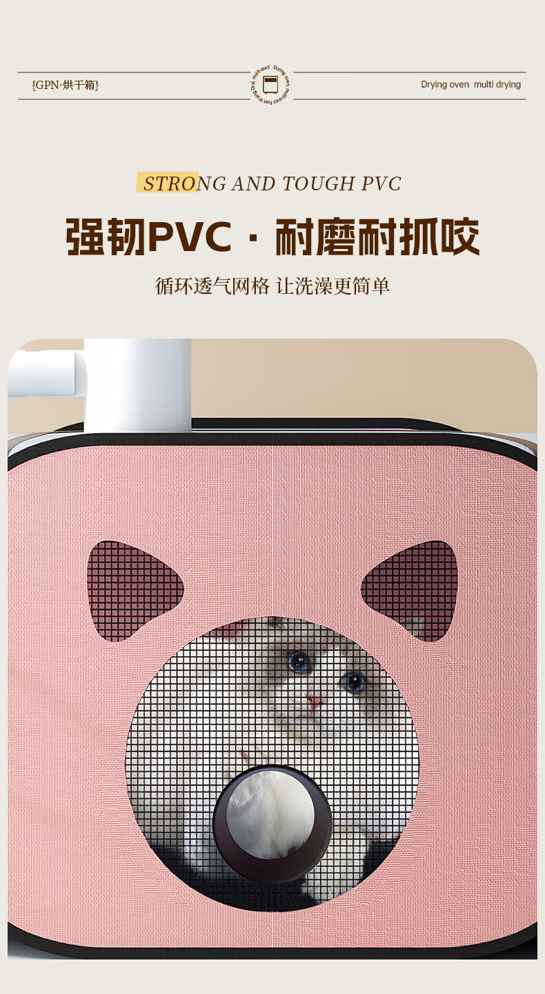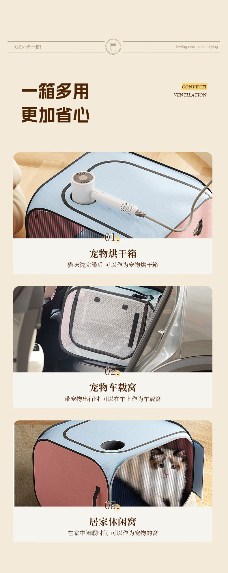 Cat drying box, blow drying, pet bathing, household cat washing hair dryer, small folding hair drying tool for dogs, pink and blue drying box + silent dryer