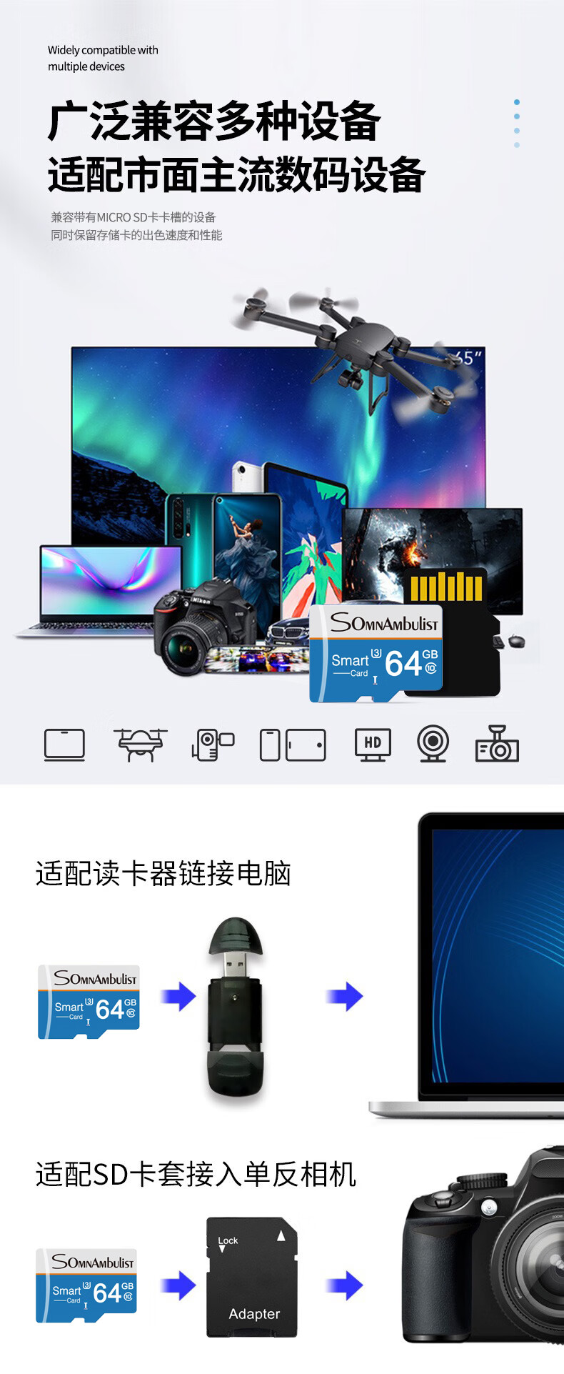 Tarjeta de memoria genuina para teléfono móvil de capacidad total, grabadora de conducción, tarjeta de memoria TF de alta velocidad, cámara de vigilancia, cámara de drones, tarjeta de memoria 64G/128G, tarjeta de memoria universal, tarjeta TF - tarjeta de memoria universal de alta velocidad, tarjeta blanca y azul de 32GB