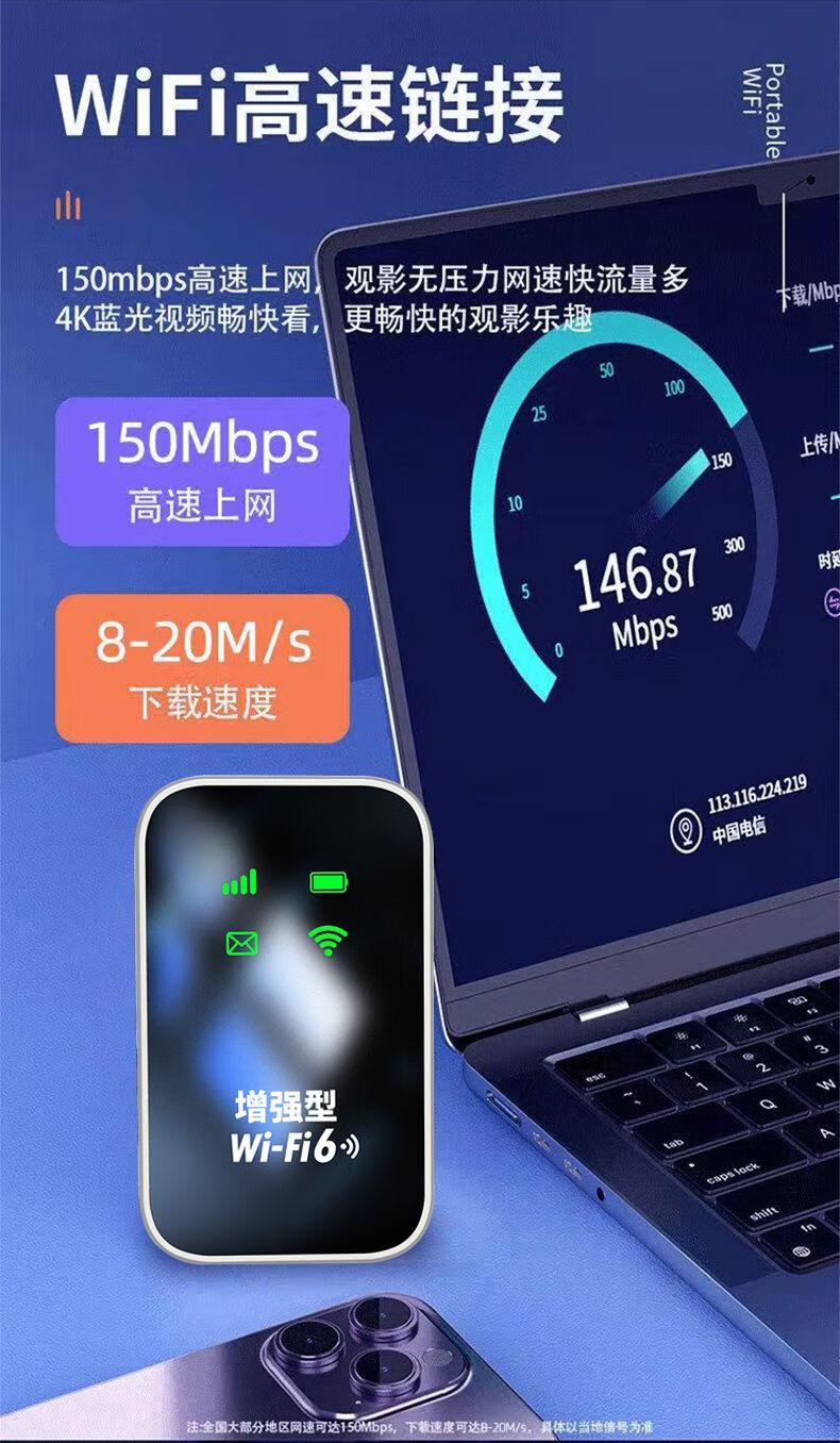 Korecat portable wifi three-network universal wireless wi-fi6 card-free mobile Unicom and Telecom unlimited portable 4G high-speed accompanying network universal traffic 2025 model random colors/no pre-storage required 6 cores* suitable for one person low latency + unlimited traffic speed