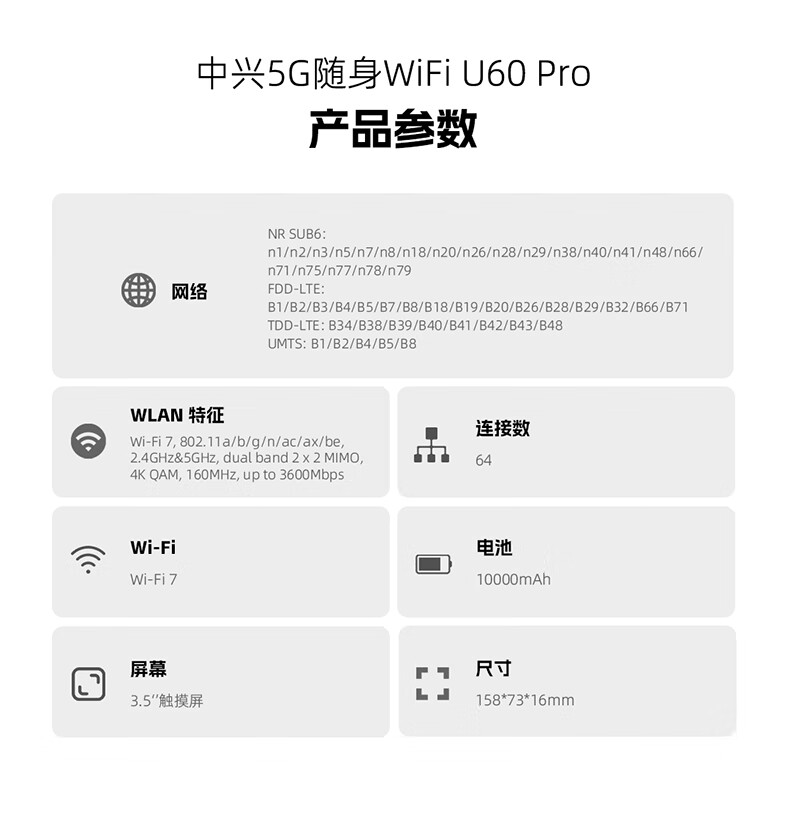 ZTE U60 Pro 5G portable WiFi7 mobile accompanying 5g full network plug-in card router long battery life car unlimited wifi card wireless broadband portable 2025 model U60 Pro black + single network annual package monthly 1500G