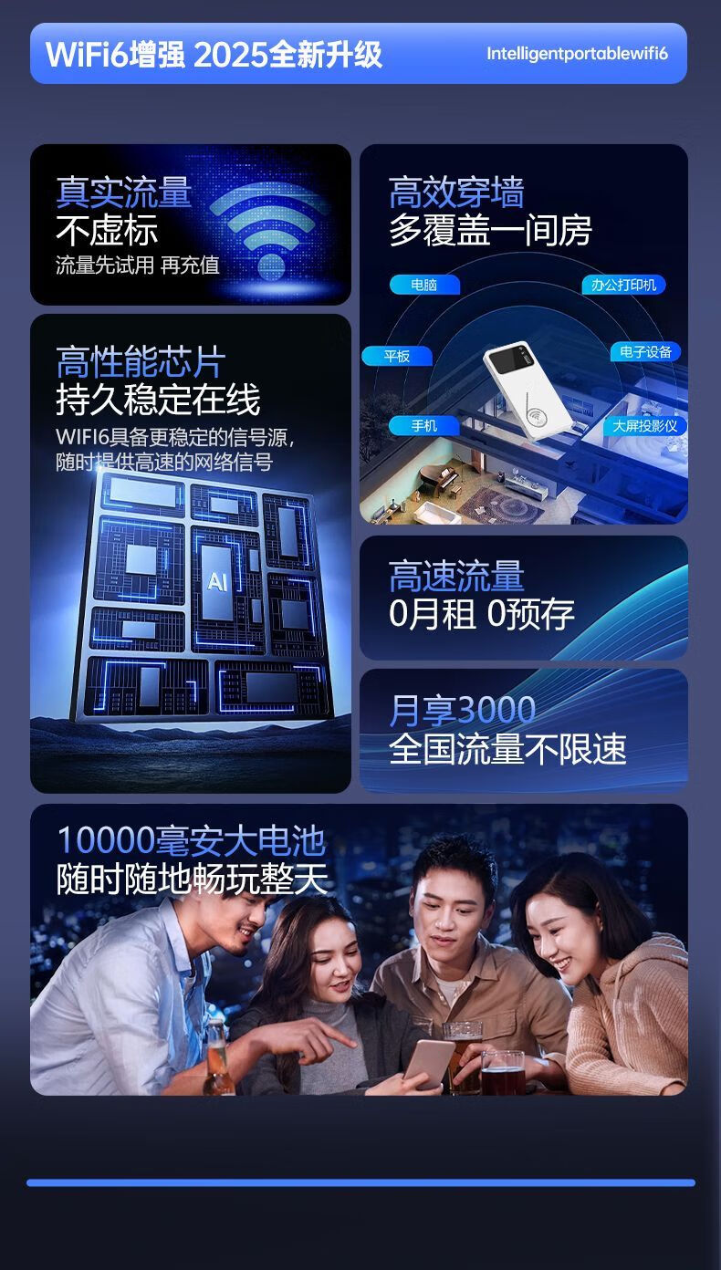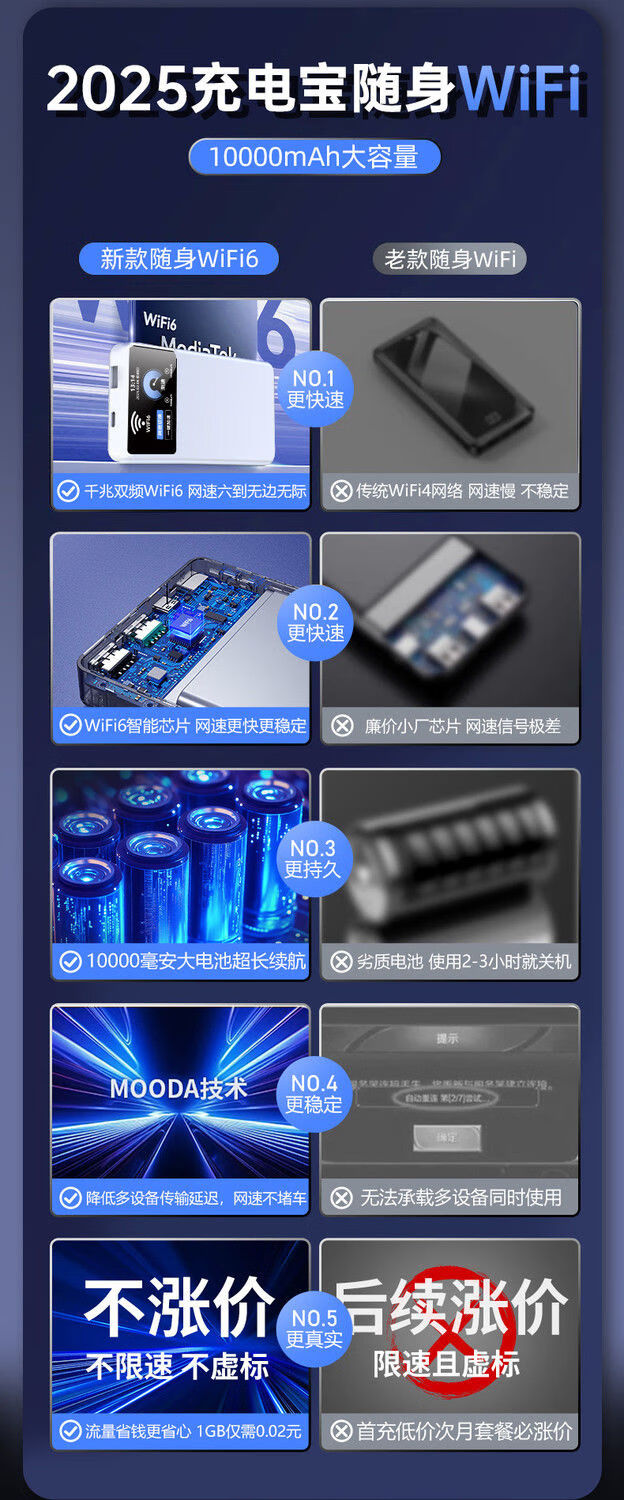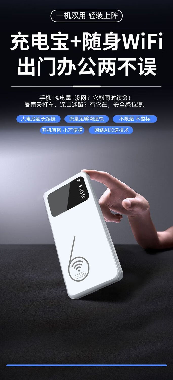 帝旭随身wifi充电宝二合一移动随身wifi无线网带无限流量2025款全国通用网络通用流量随身携带无线网卡 【高配版】充电宝上网二合一【10000毫安】