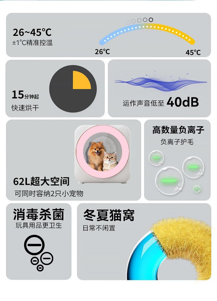 Beixin Pet Pet Drying Box Intelligent Fully Automatic Silent Cat and Dog Hair Dryer Home Hair Blowing Bag Artifact Dryer Sakura Powder-Upgraded Negative Ion Hair Care