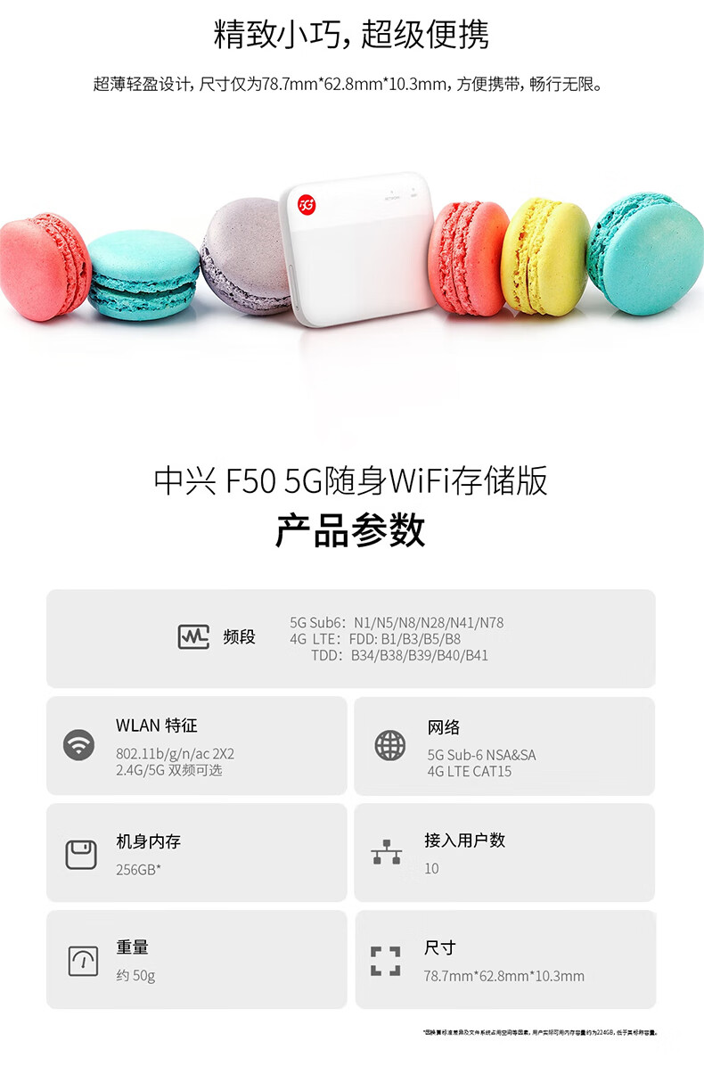 ZTE (ZTE) F50 versión de almacenamiento 5G enrutador inalámbrico sin tarjeta wifi portátil transmisión en vivo para dormitorio de coche F50 Telecom 5G + 256GB versión de almacenamiento