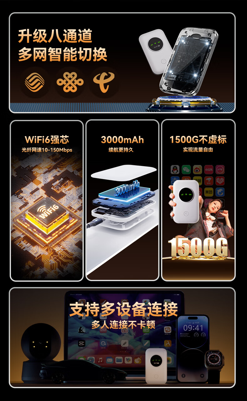 Cool Wing wifi portátil multired universal inalámbrico sin tarjeta wi-fi6 enrutador 4G montado en el automóvil Internet móvil ilimitado portátil de alta velocidad universal universal 2025 5GXY Extreme Edition Batería de larga duración de 10000 mAh + carga y publicación de pedidos de doble uso de Internet (tráfico de 1500G) transmisión en vivo de drama y artefacto de transmisión de video