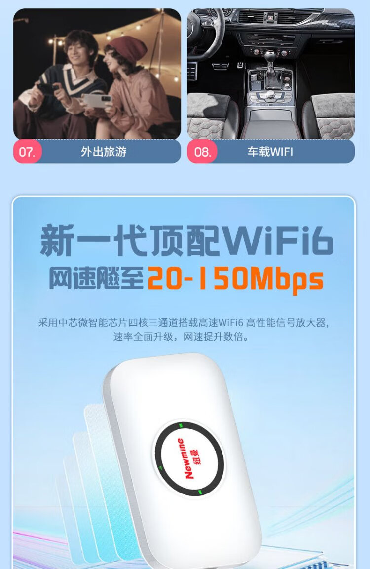 Newman wifi portátil de doble red universal móvil inalámbrico wifi6 tesoro de Internet sin tarjeta que acompaña al automóvil portátil inalámbrico compatible con equipos 5G / 4G tráfico universal nacional modelo 2025 modelo de carga de 3000 mAh duración de batería súper larga: sin tarjeta universal a nivel nacional + 1500G mensual + velocidad ilimitada