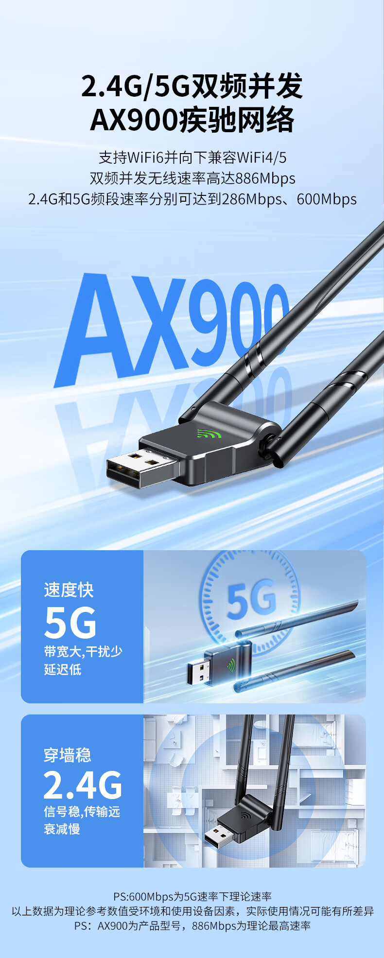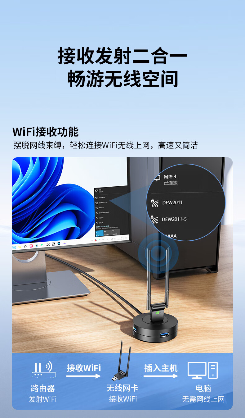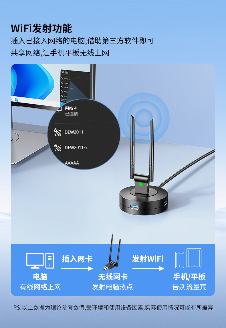 USB-Wireless-Netzwerkkarte, Desktop-WiFi6-Empfänger, Sender, Laptop-Host, Internetverbindung, Hotspot, beschränkt auf externes Netzwerk, externes Gigabit 5G-Dualband-Signal, treiberfrei, AX300 WiFi6, treiberfreie Netzwerkkarte