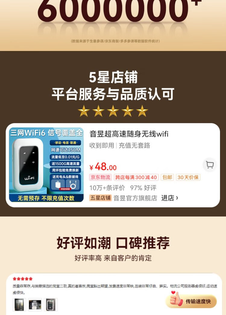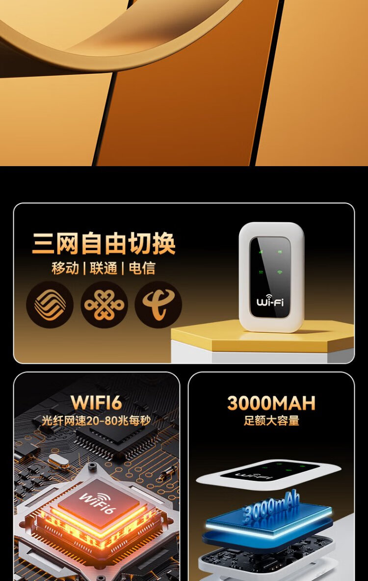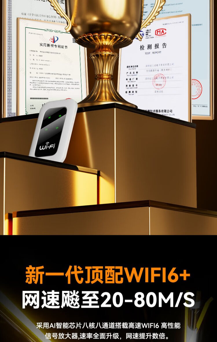 Yinyu portable wifi triple network universal card-free wireless wifi6 car 4G5G router portable internet treasure mobile Unicom telecom high speed nationwide universal 2025 new triple netcom 6000 mAh super long battery life + nationwide universal