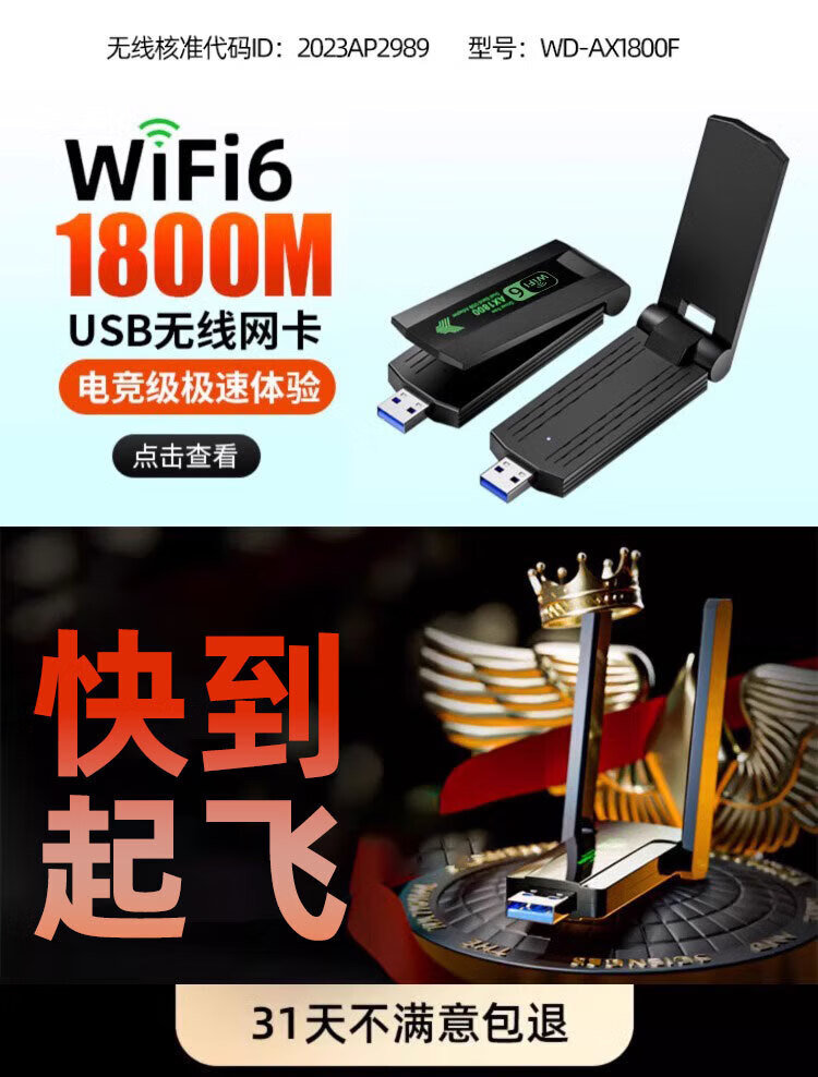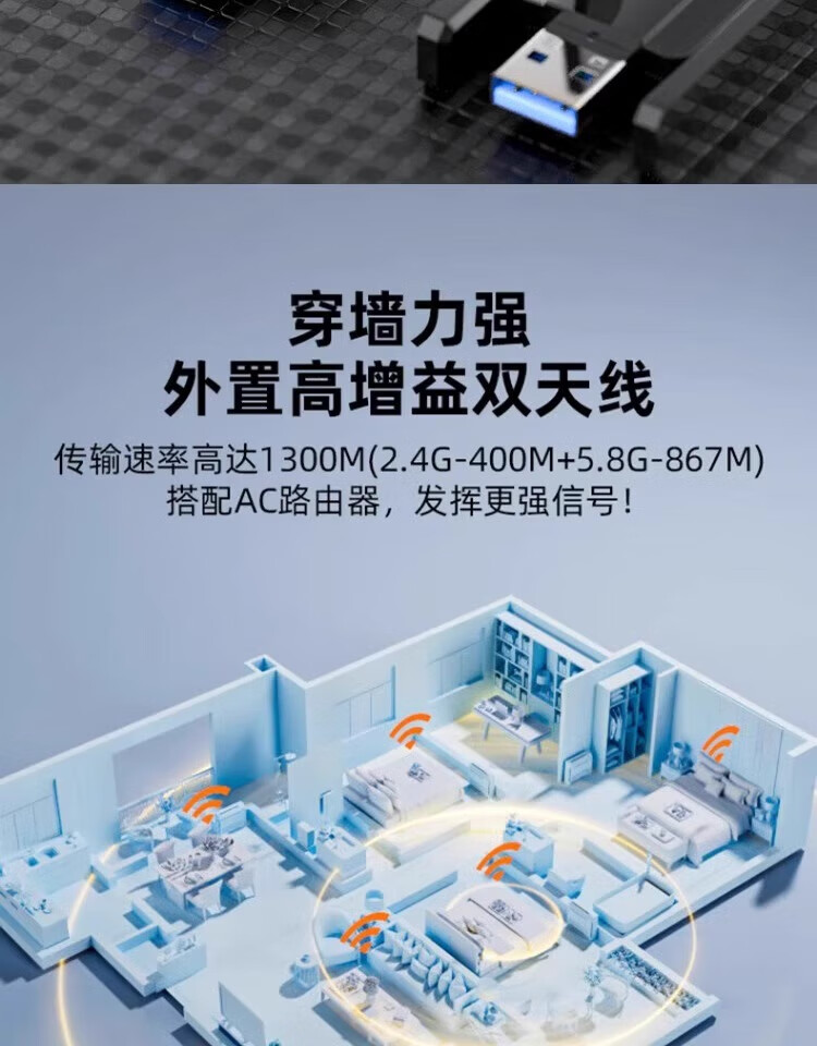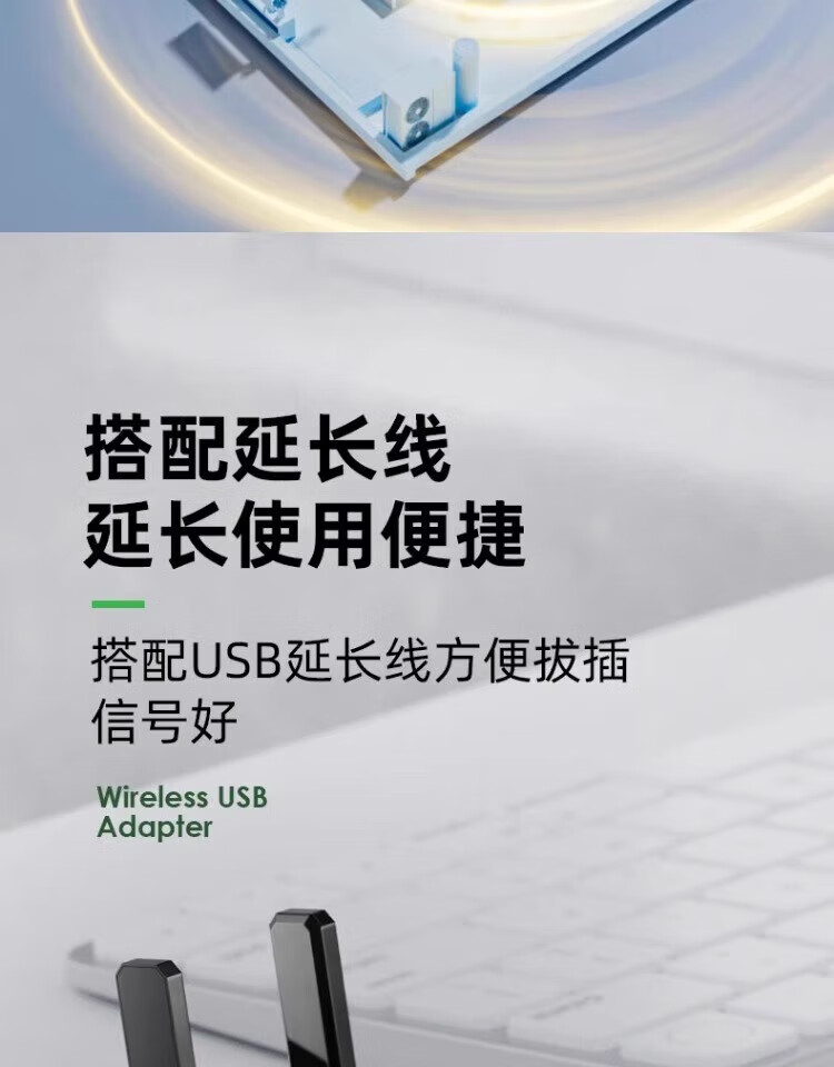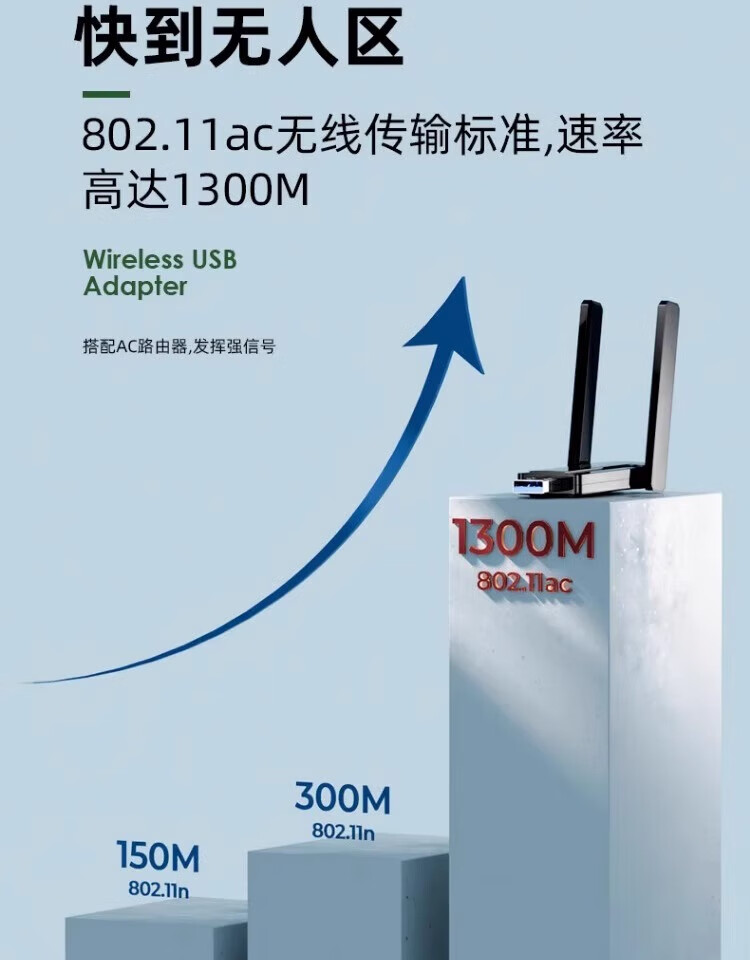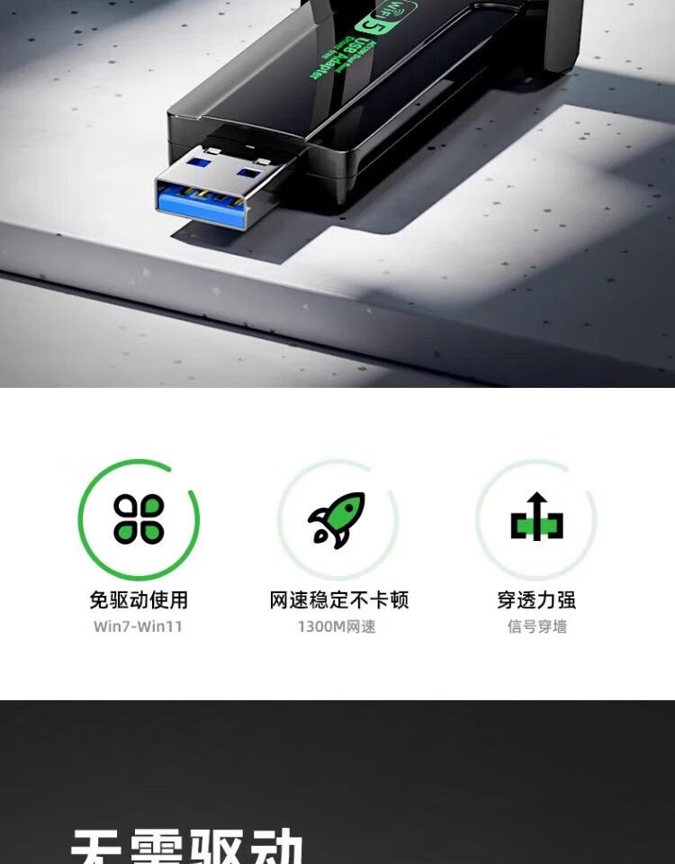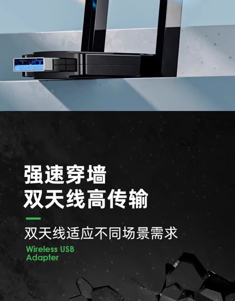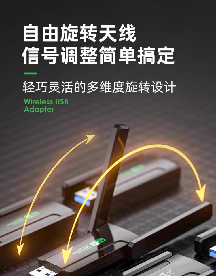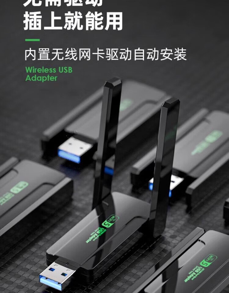 【京东物流】usb无线网卡台式机笔记本wifi接收器1300M千兆5G双频免驱动发射器网络信号增强器网卡 150M单天线款【免驱安装】