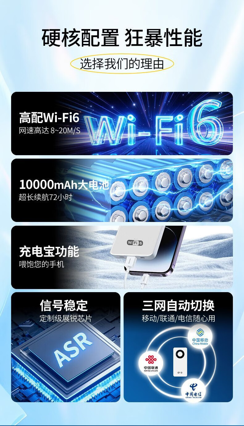 Xuankashi 2025 nuevo WiFi6 + 5GHF acceso a Internet de alta velocidad 10000 mAh banco de energía móvil wifi6 sin tarjeta en todo el país datos de velocidad ilimitada modelo enchufable plug and play versión mejorada de alta gama de wifi en todo el país