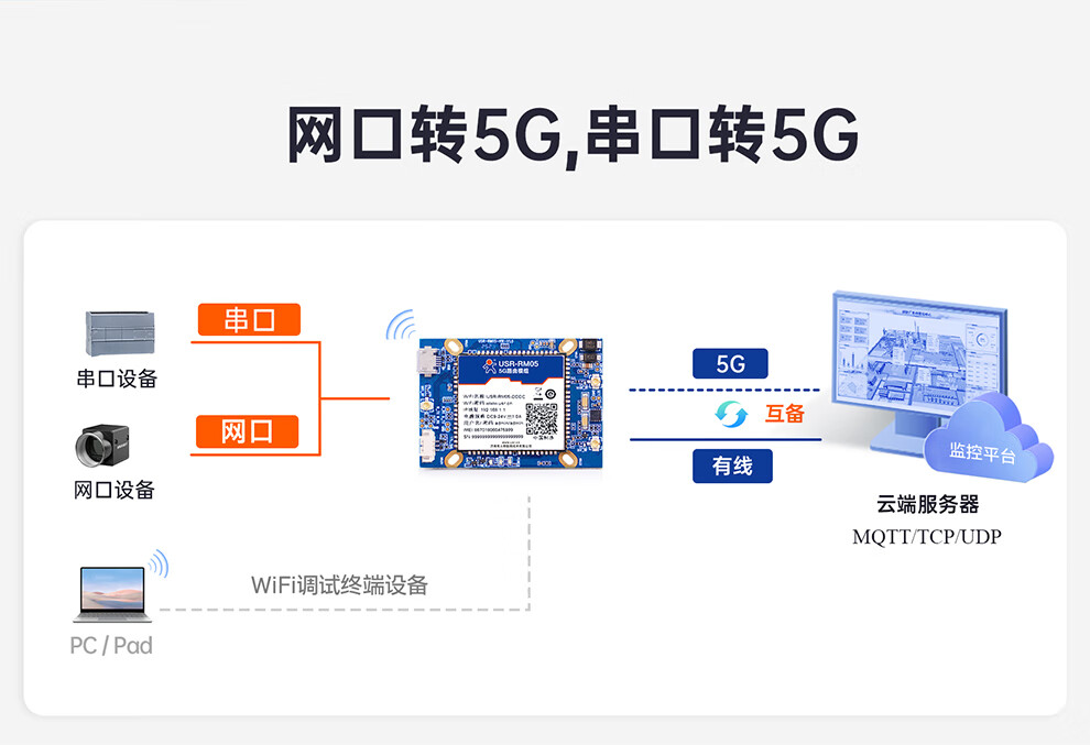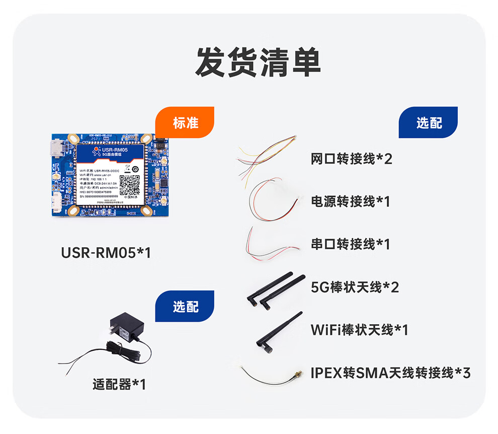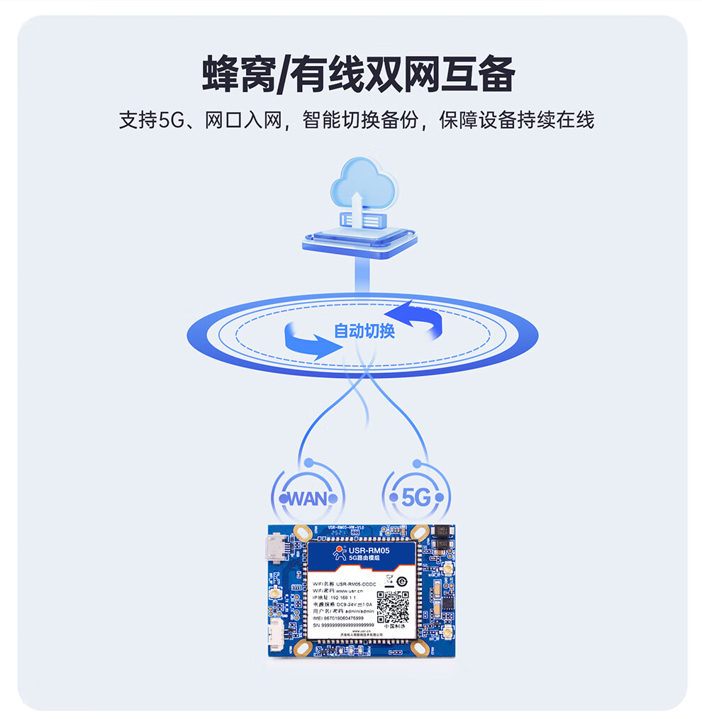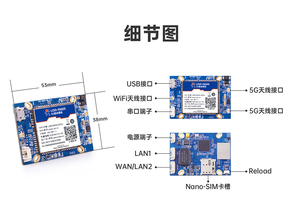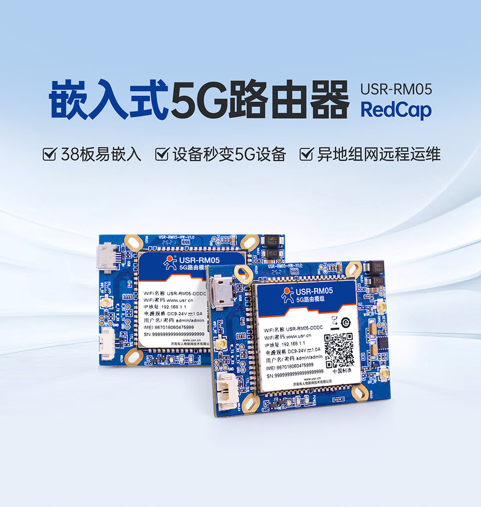 Someone embedded 5G plug-in card industrial router module 5G RedCap serial port DTU2 network port 4G/5G full network wifi remote networking 38 board size USR-RM05 12V medium power supply