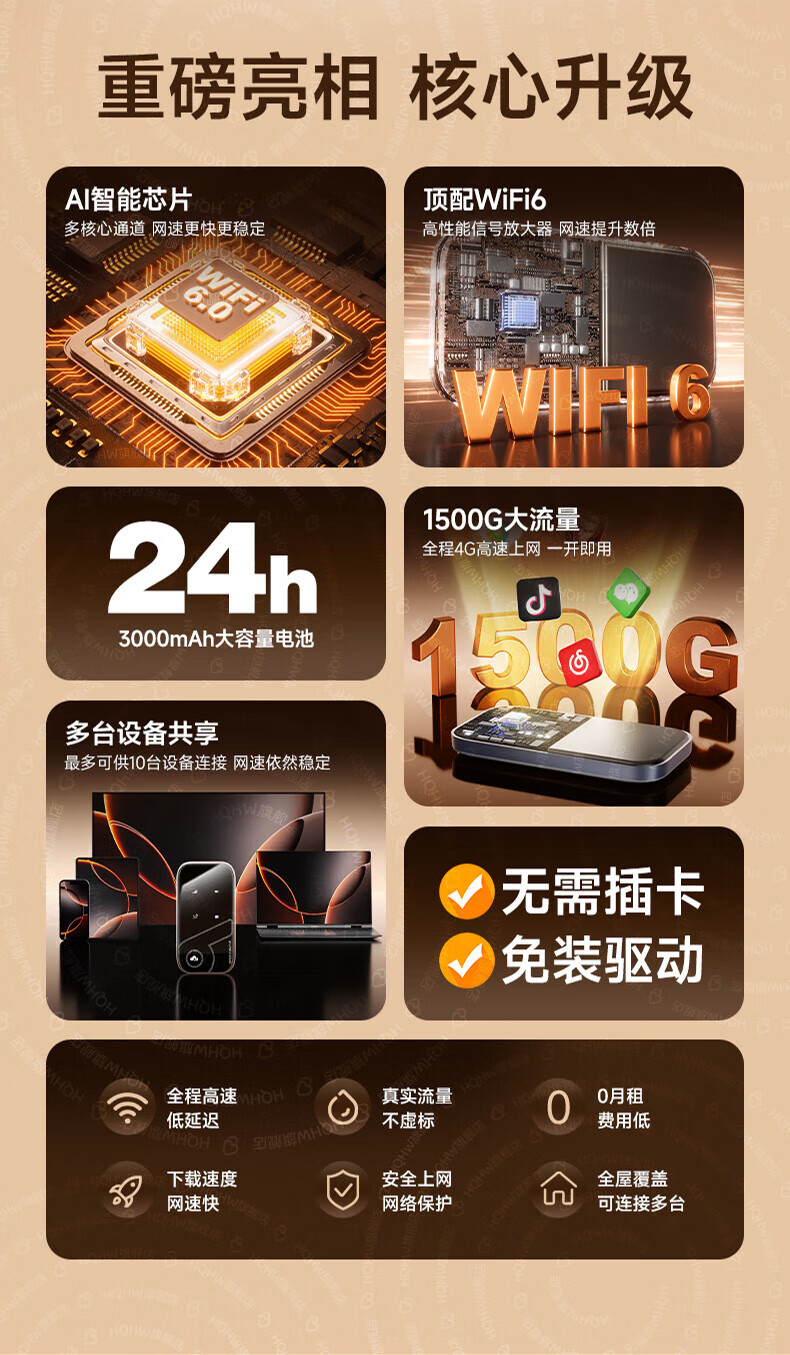 WFWQ La máquina Huawei es adecuada para 5G Gigabit portátil WiFi6 conmutación de tres redes de alto tráfico a nivel nacional tráfico inalámbrico móvil universal sin tarjeta tráfico ilimitado enrutador de banda ancha para automóvil 2025 versión mejorada WiFi6 portátil conmutación de tres redes a voluntad