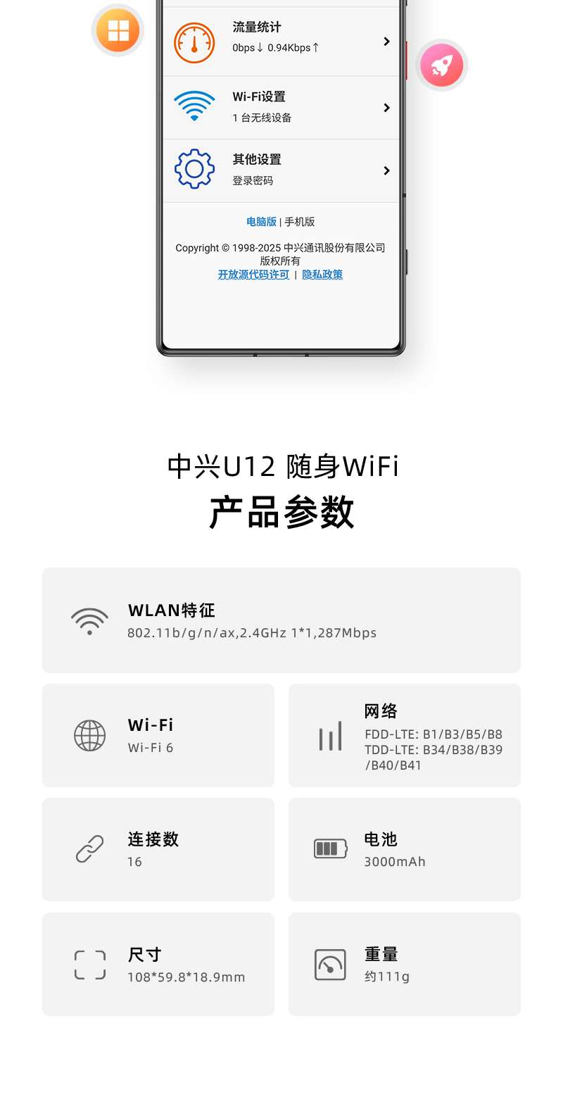 ZTE U12 wifi portátil sin tarjeta móvil inalámbrico wi-fi6 coche 4G enrutador portátil ilimitado de alta velocidad Internet tesoro nacional tráfico universal 2025 modelo 5GXY15B estrella niebla gris red dual WIIF6+3000 mAh batería súper larga duración sin límite de velocidad sin falso estándar tráfico mensual 1500G