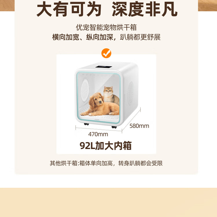 Youpet pet drying box for small and medium-sized cats and dogs to take a bath, automatically collect cat hair and blow dryer artifact flagship model interactive window + 92L + with wheels