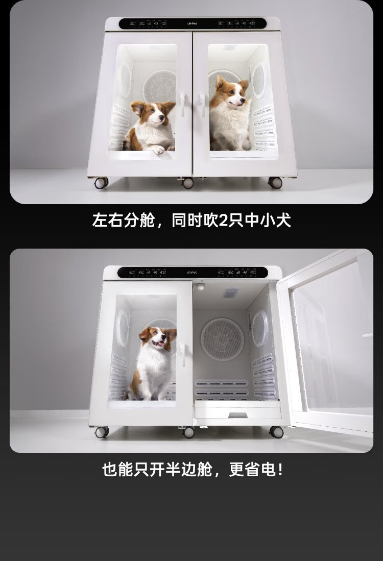 Jirpet Caja de Secado para Mascotas Cplus Caja de Secado Inteligente para Perros Grandes y Medianos Doble Control Doble Apertura Baño para Perros y Gatos 410 Litros Doble Control Doble Apertura-C-Plus