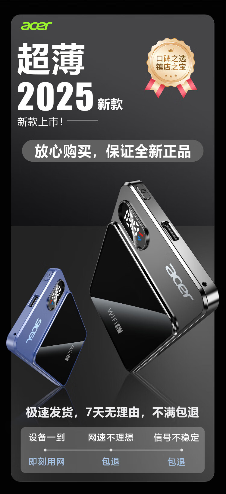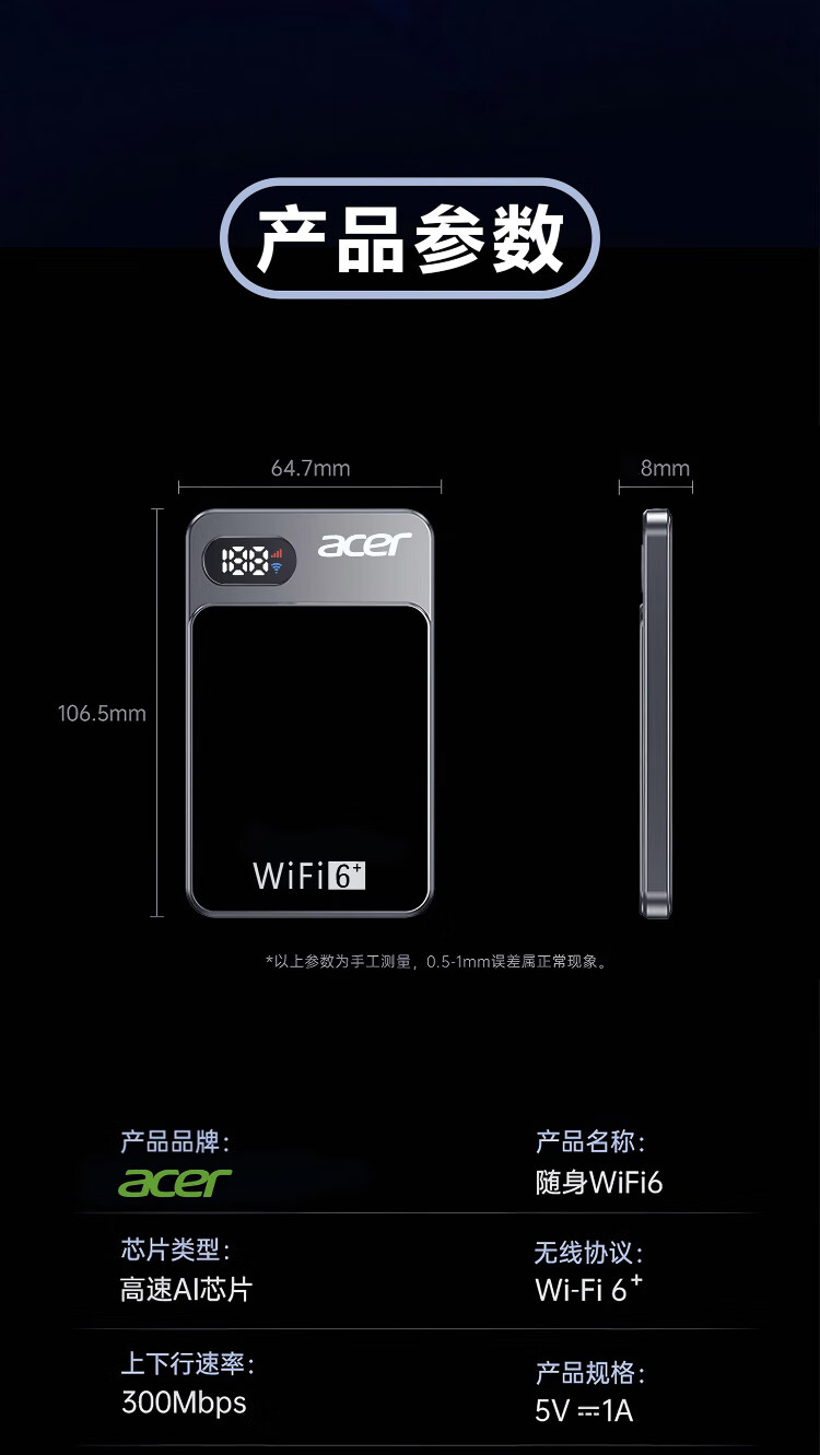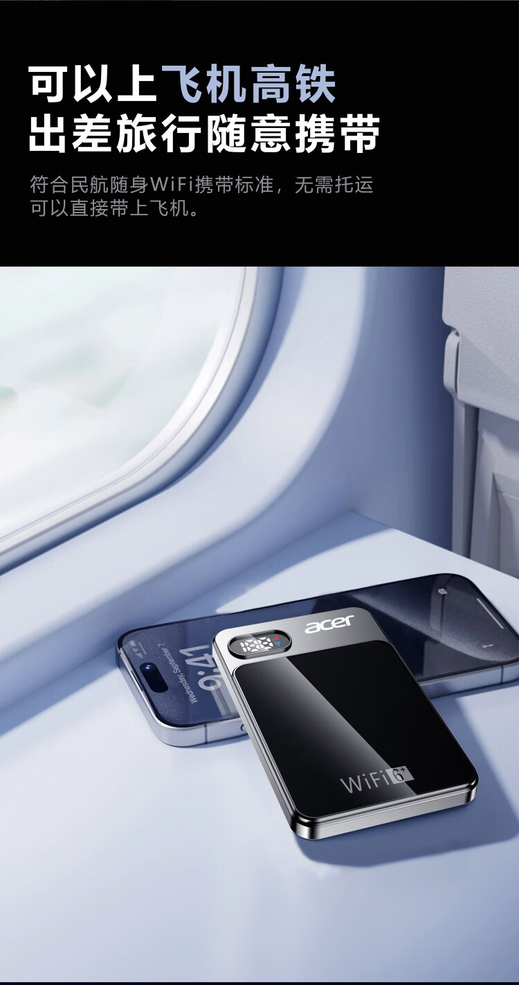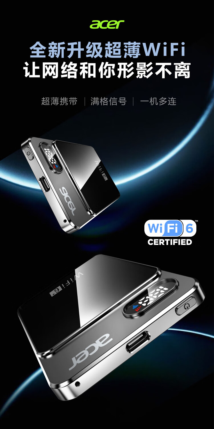Acer portable wifi wireless wi-fi6 card-free mobile Unicom Telecom unlimited portable 4G high-speed Internet equipment router universal traffic 2025 ultra-thin model Acer P1 (WIFI6+dual channel) network speed improvement rose purple