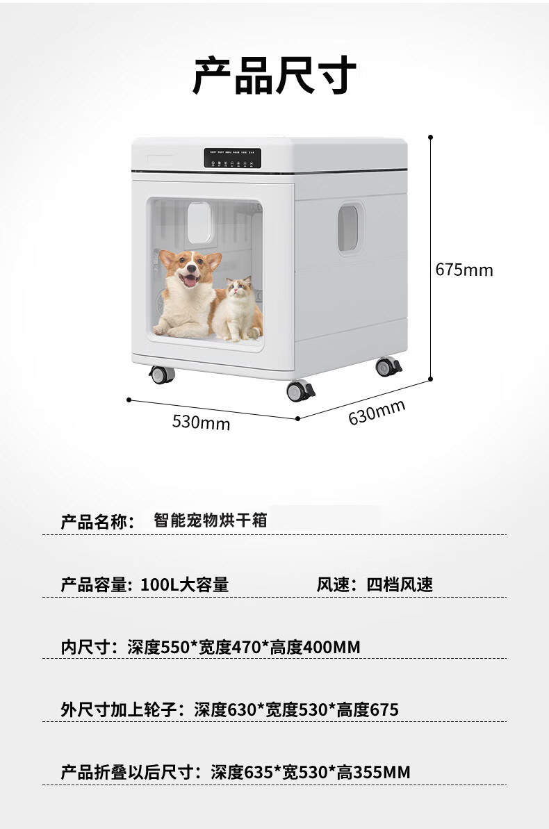 Chongzhidi Caja de Secado para Mascotas Secador para Gatos Artefacto para baño y Secado con Secador para Perros de tamaño mediano Caja de Secado Plegable Comercial para el hogar de 130 L 40 Jin Jin Equivale a 0,5 kg