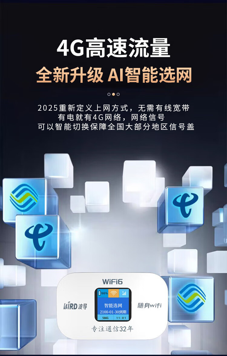 Bird portable wifi 6 official authentic Xinjiang and Yunnan available for Internet access car portable home wireless network card router cpe mobile portable wifi with color screen model Xinjiang special shooting - only available for China Unicom single network (3000 mAh battery)
