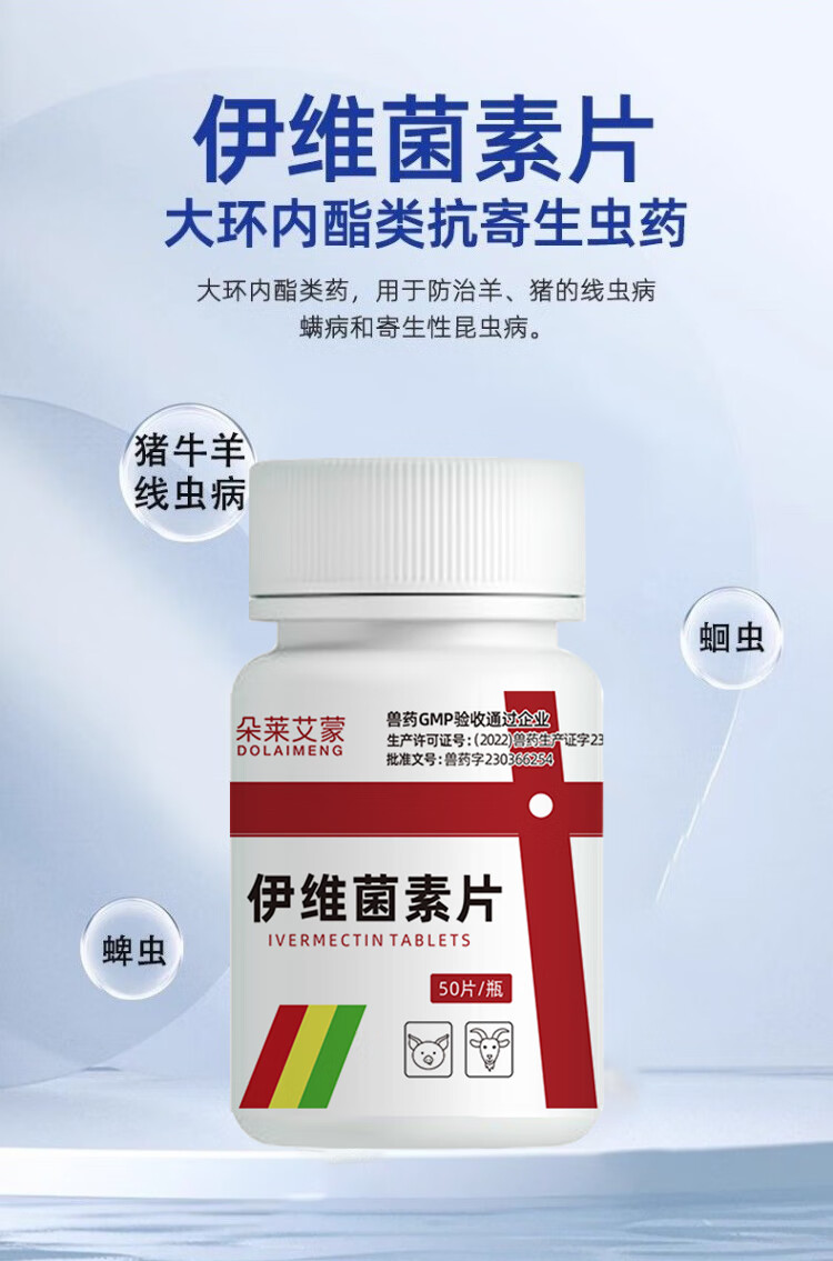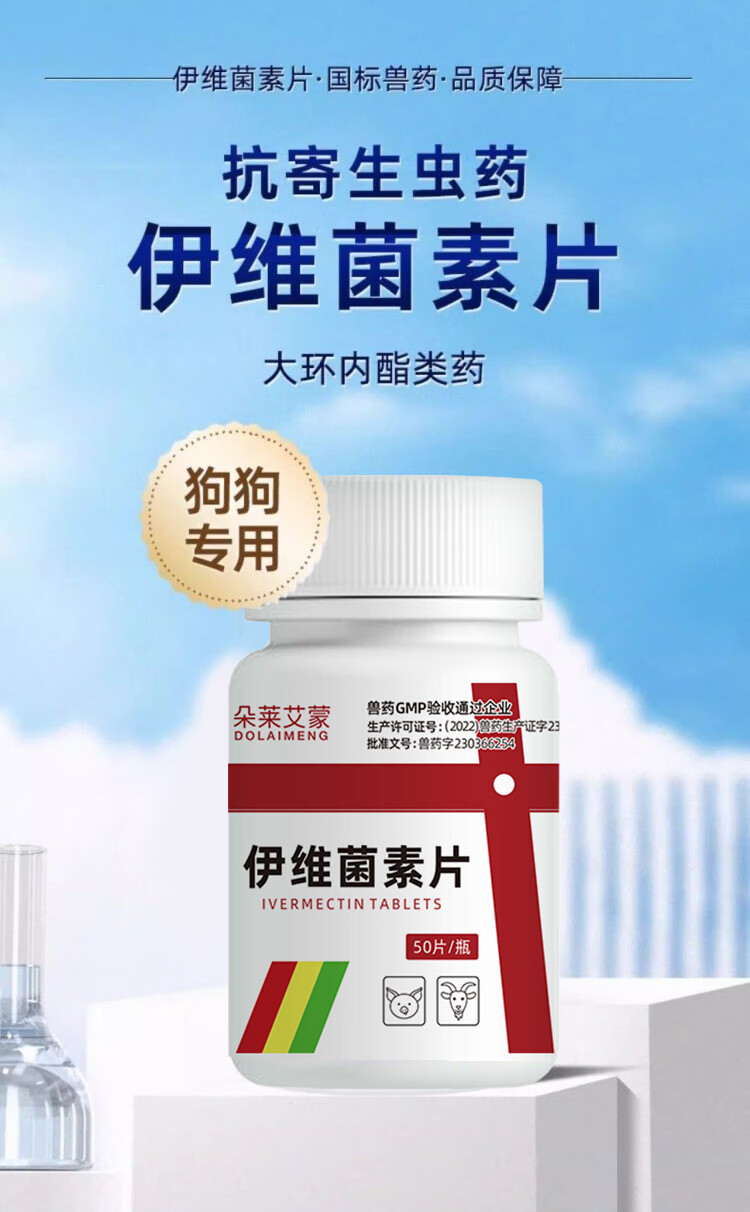 伊维菌素片犬螨康宠物耳螨疥螨狗狗驱虫药体内外打虫药 【伊维菌素片50片/瓶】1瓶装