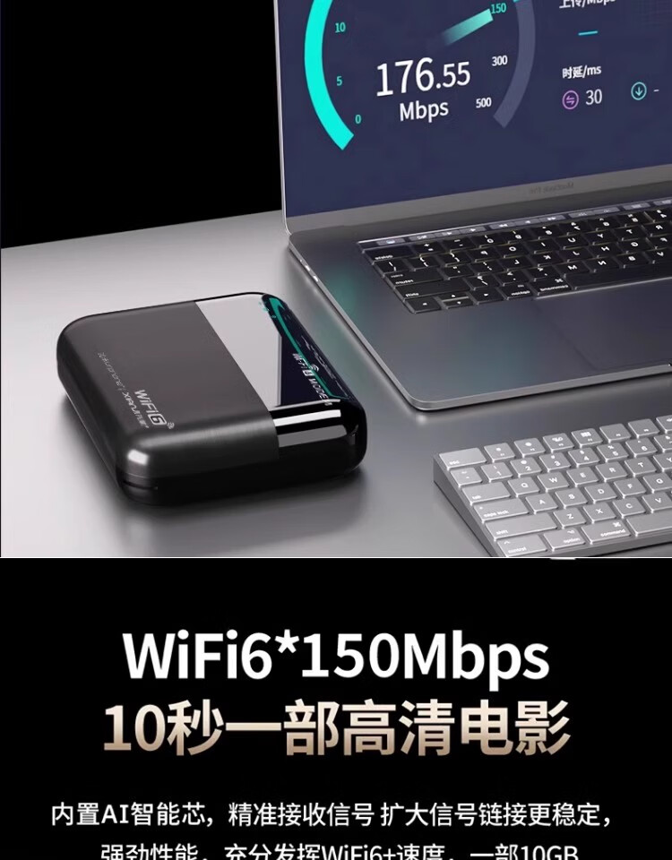 Youfeng portable wifi mobile wireless wi-fi6 no need to pre-store, portable in car dormitory, charge at any time, triple netcom M6-black, speed version, top equipped with Ultra+ WiFi6+Ai channel/business negotiation