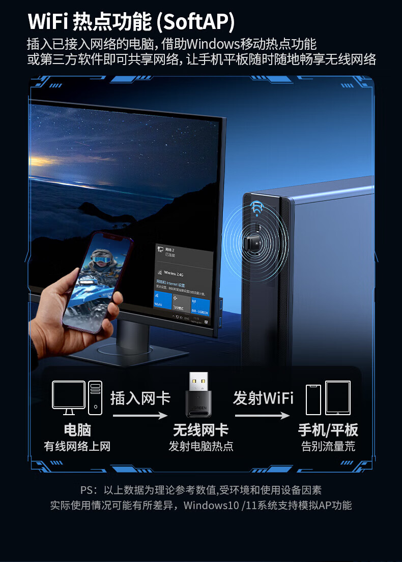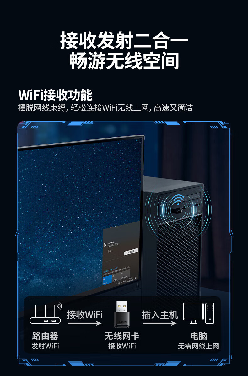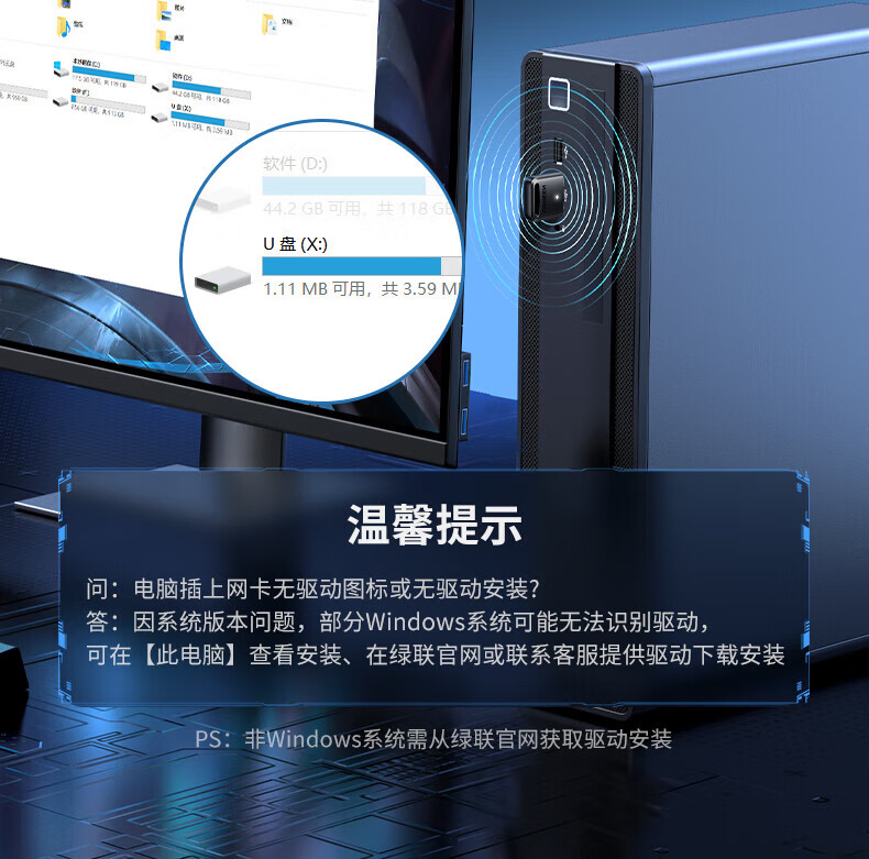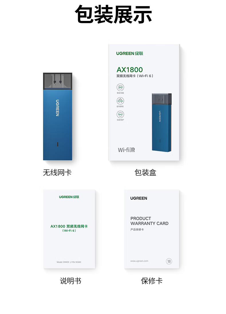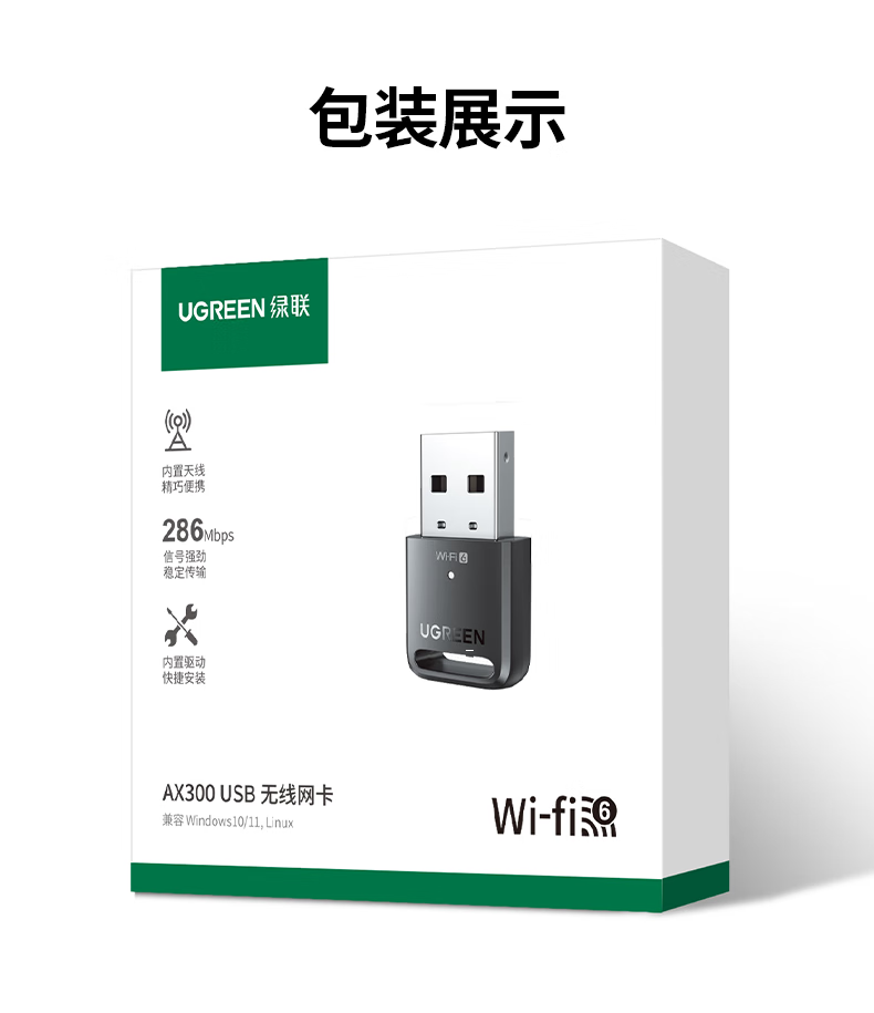 Green Alliance USB-Wireless-Netzwerkkarte, Desktop-Computer, Host, WiFi6, Wireless-Empfänger, Sender, Notebook-Verbindung, externer Netzwerk-Hotspot, Gigabit 5G-Dualband-Signal, treiberfrei, LL42 AX300-WiFi6, heißer Verkauf