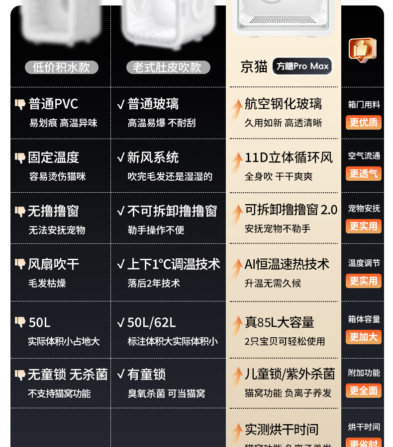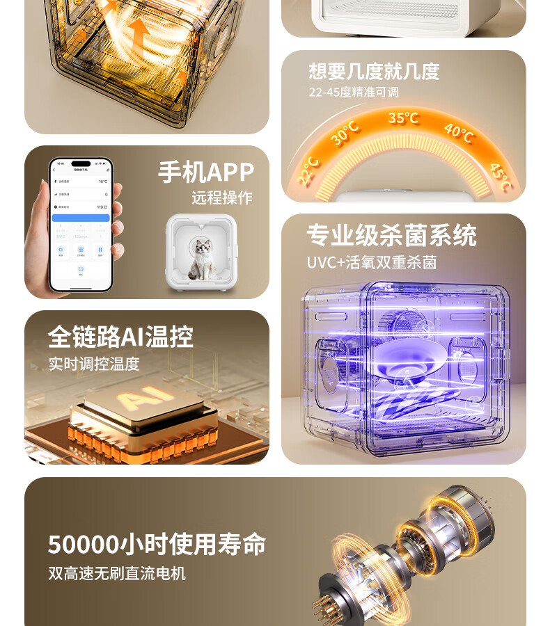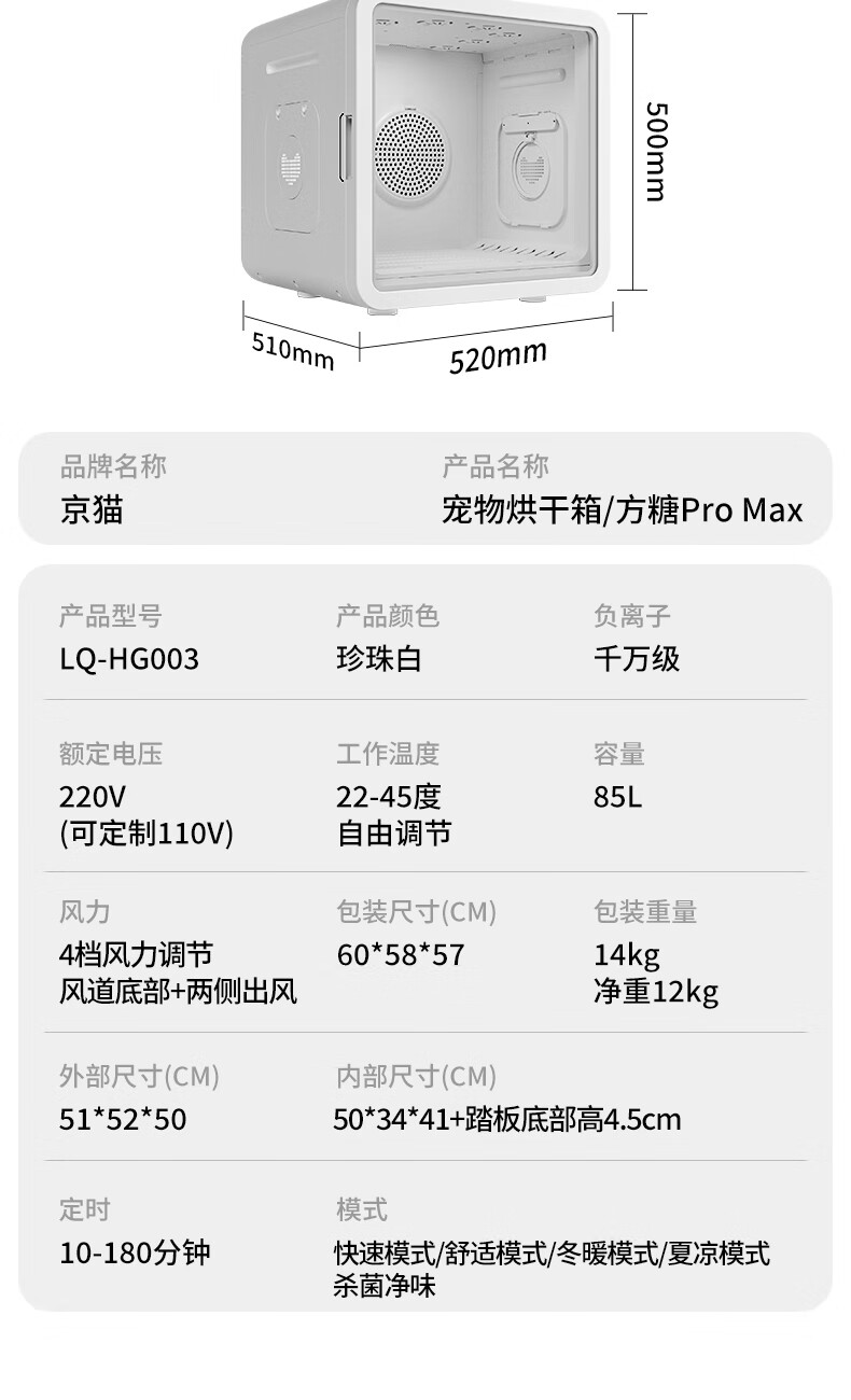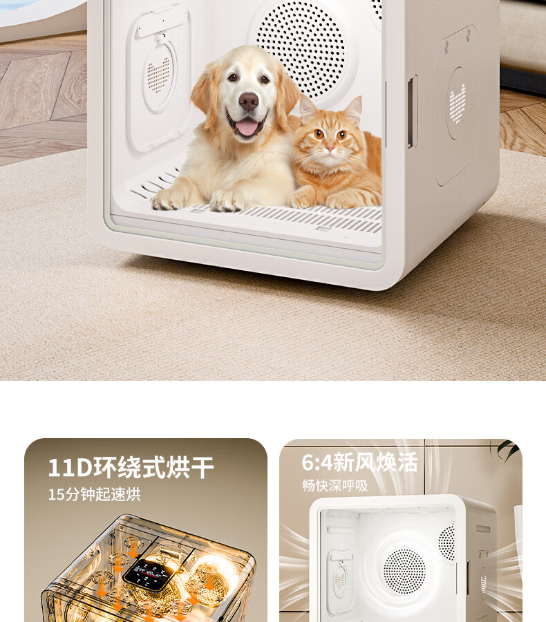 Jingmao Caja de Secado para Mascotas Secador automático para Gatos Baño doméstico y Secador de Pelo Secador para Perros Smart Sugar Cube ProMax Gran Capacidad + Modelo estándar de Motores duales