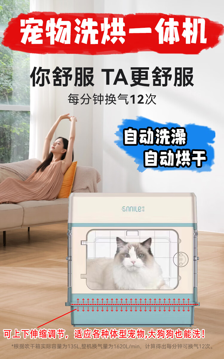 哮哮宠物智能洗烘一体机家用猫咪洗澡机狗狗全自动笼子 宠物洗烘机-玫瑰金