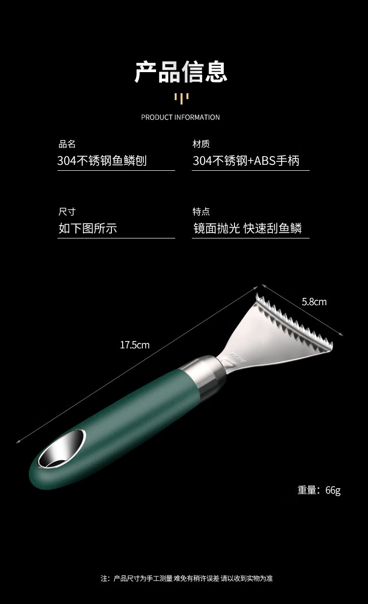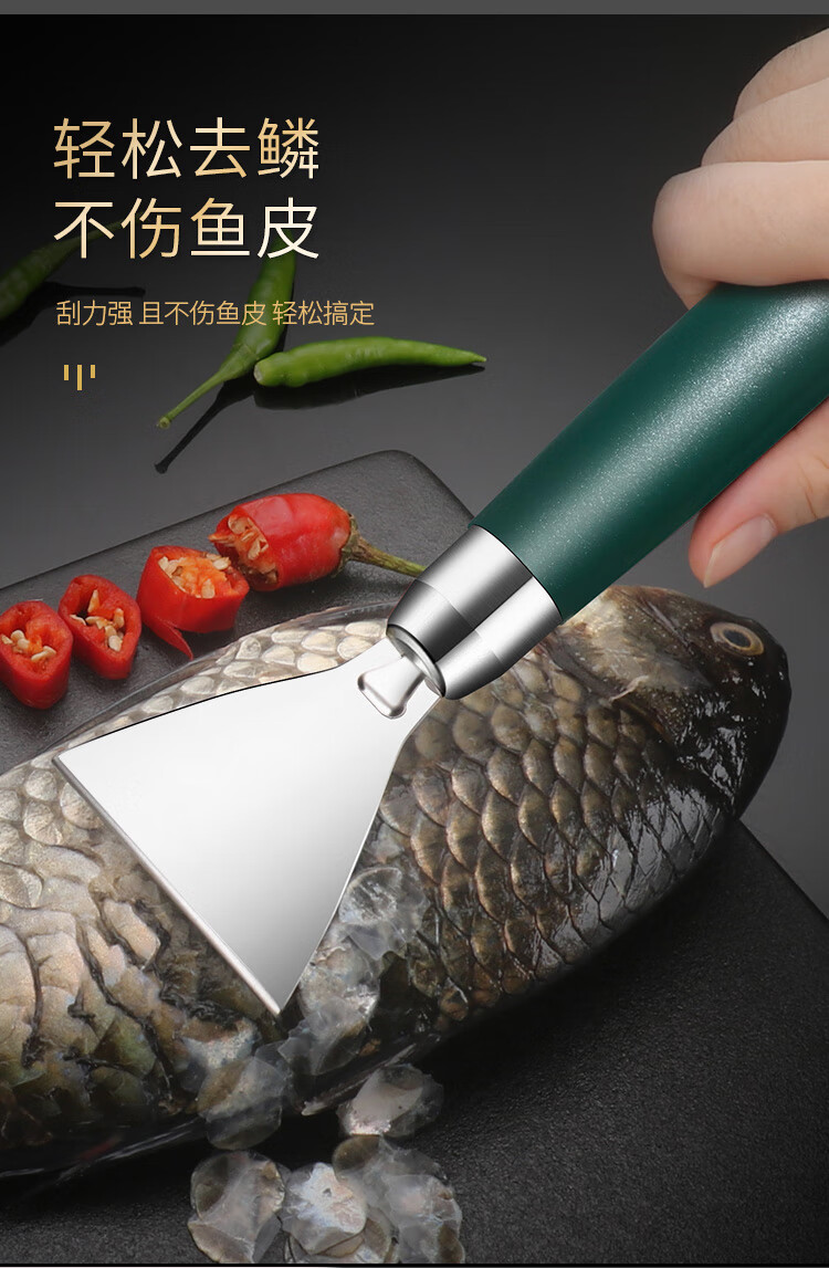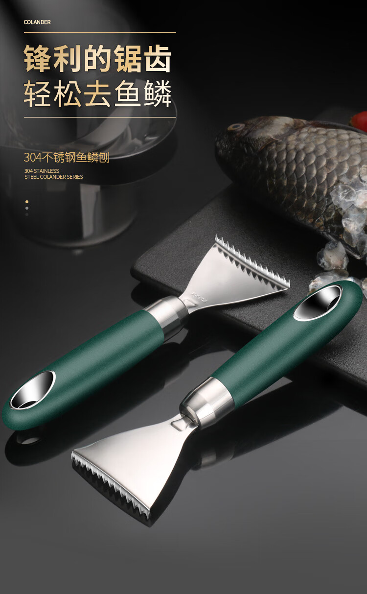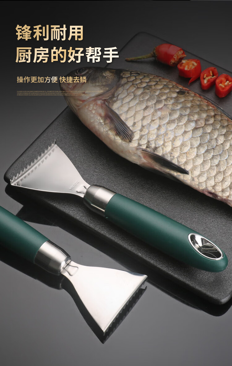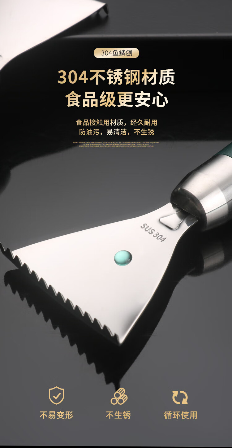 Jieyunmao 304 stainless steel fish scale scraper 304 stainless steel scale scraper multi-functional kitchen fish scale household scale removal hand 304 stainless steel dark green fish scale planer+