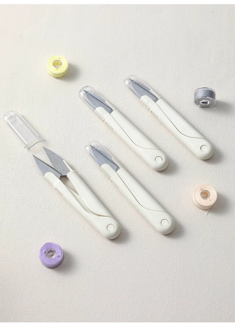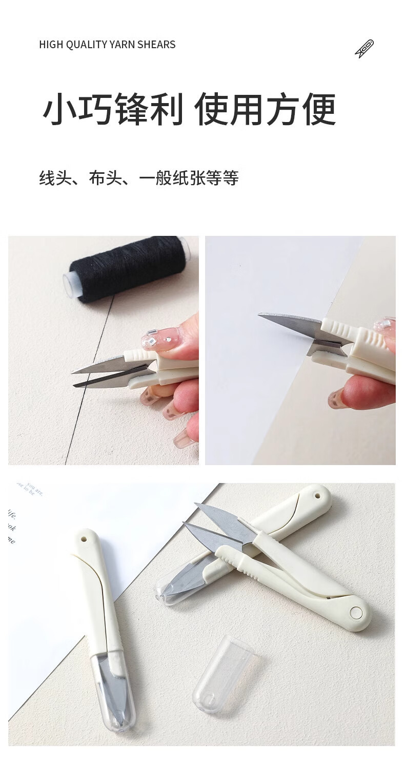 Mini tijeras pequeñas hechas a mano con cabeza redonda en forma de U para coser con resorte para uso doméstico con cubierta portátil, cabezal de corte de hilo de acero inoxidable, tijeras en forma de U, 1 paquete