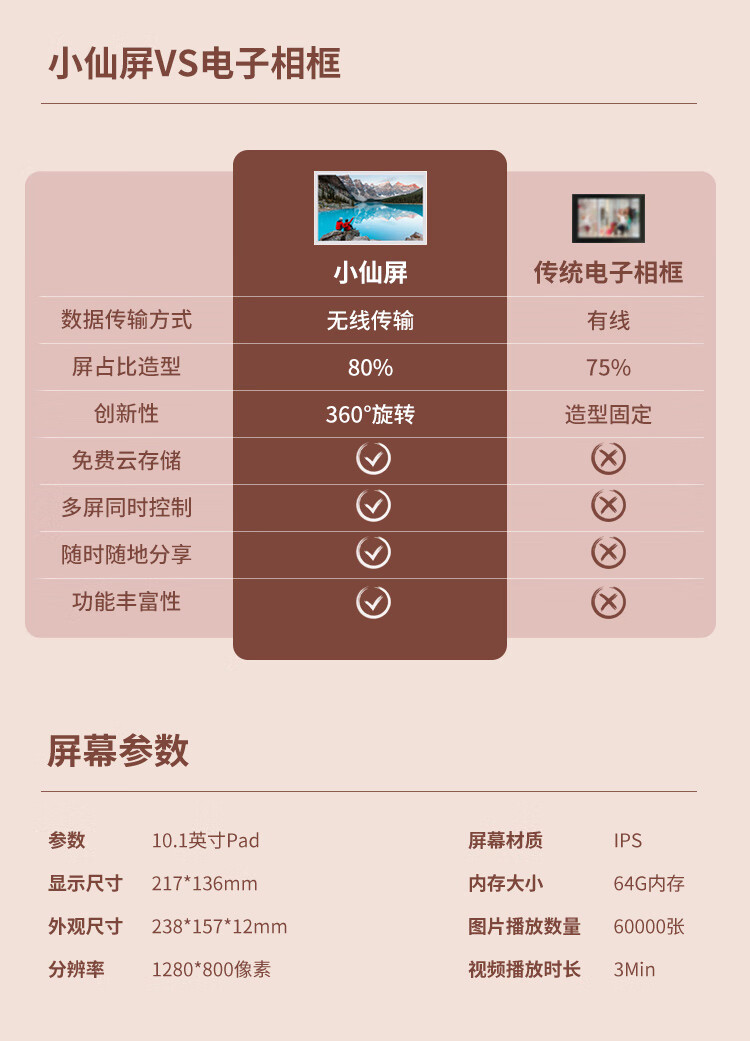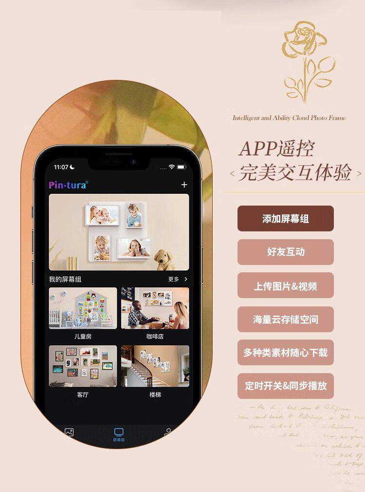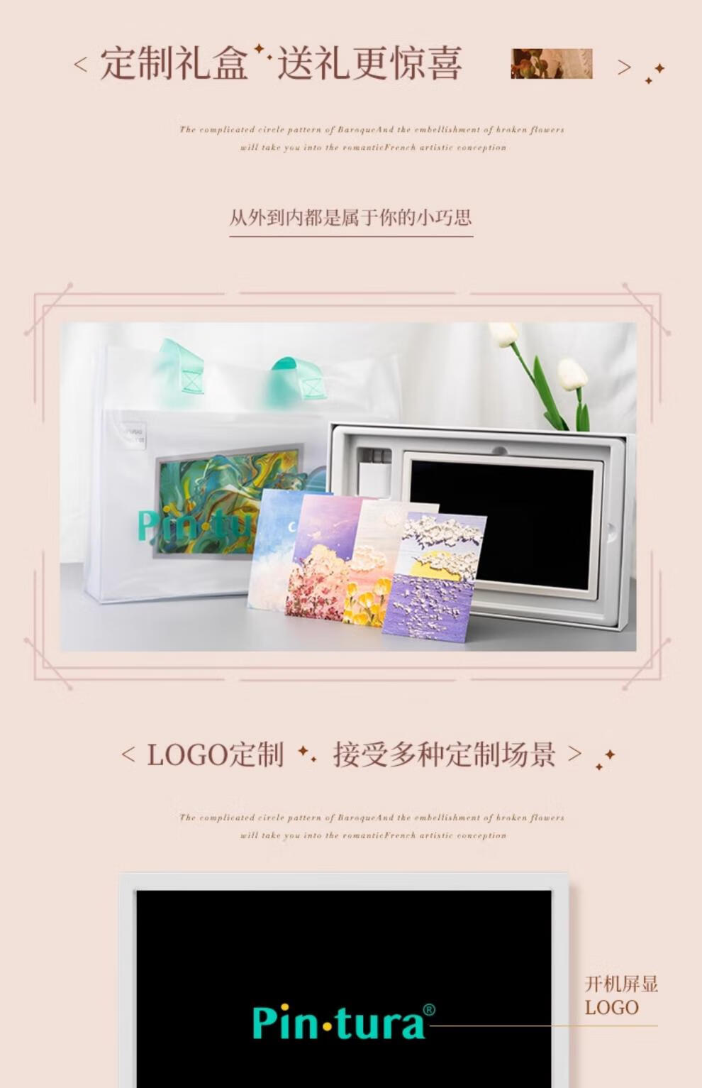 PIN TURAPintura Xiaoxian-Bildschirm, digitaler Fotorahmen, elektronisches Fotoalbum, Display, Zuhause, Geburtstag, Mädchen, Senior, Geschenk für Freundin, Jahrestag, bester Freund, Freund, Souvenir, Tisch, Mutter, Mode, 10,1 Pad + Fantasierosa-Acrylrahmen