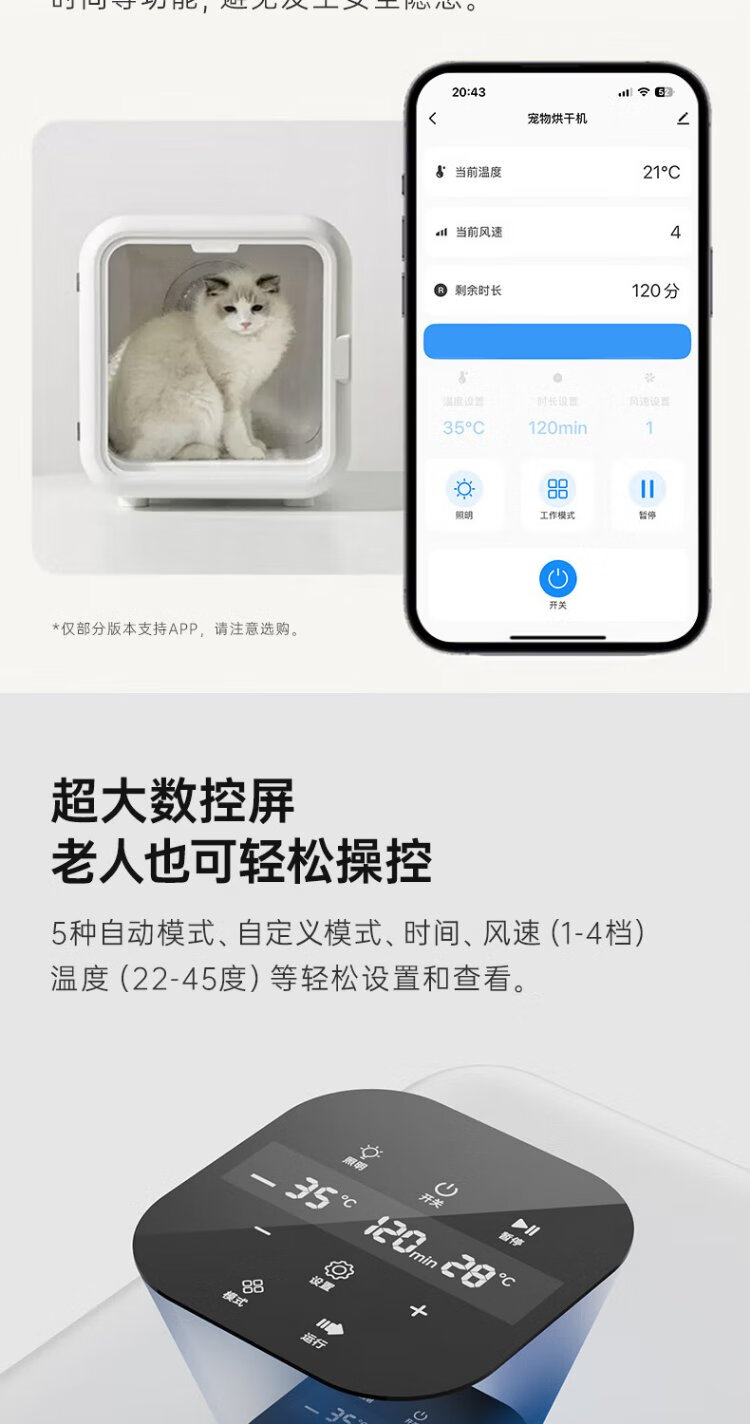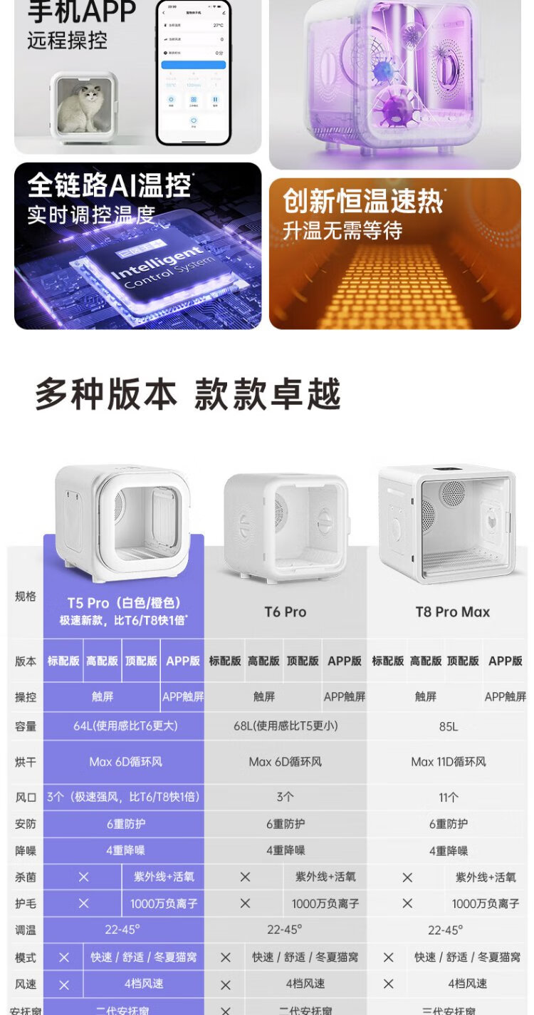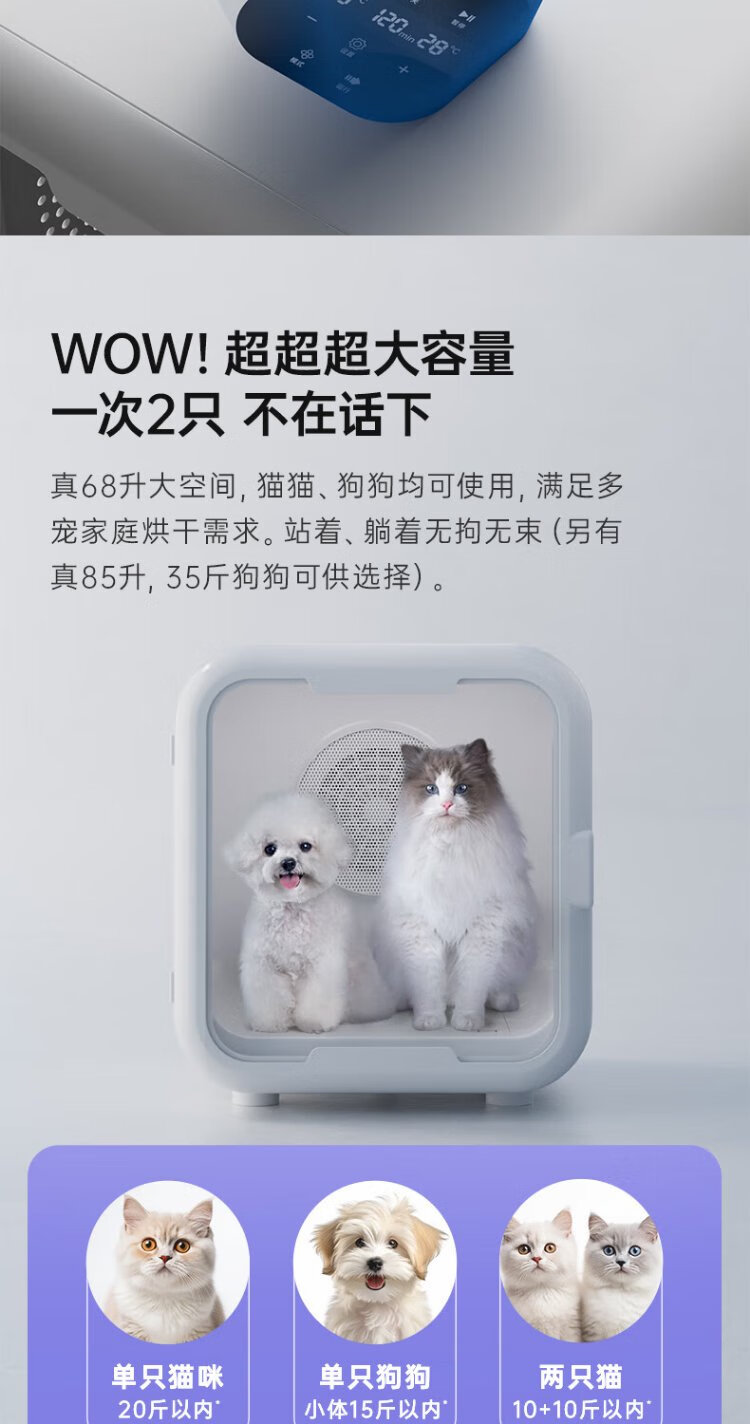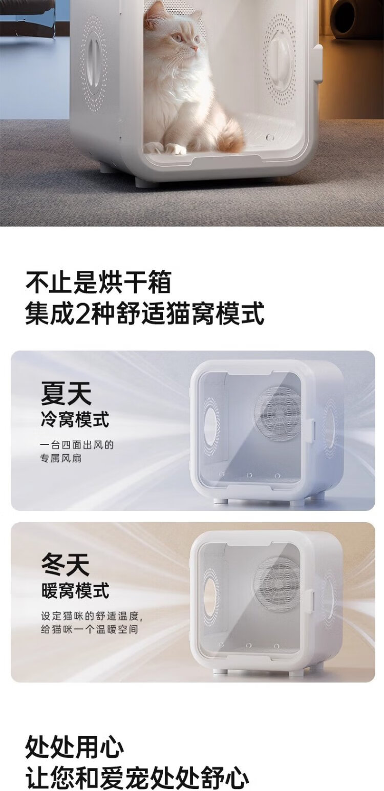 It doctor pet smart drying box cat fully automatic dog dryer household cat hair blowing bag water blowing artifact T5 high version white true 64 liters