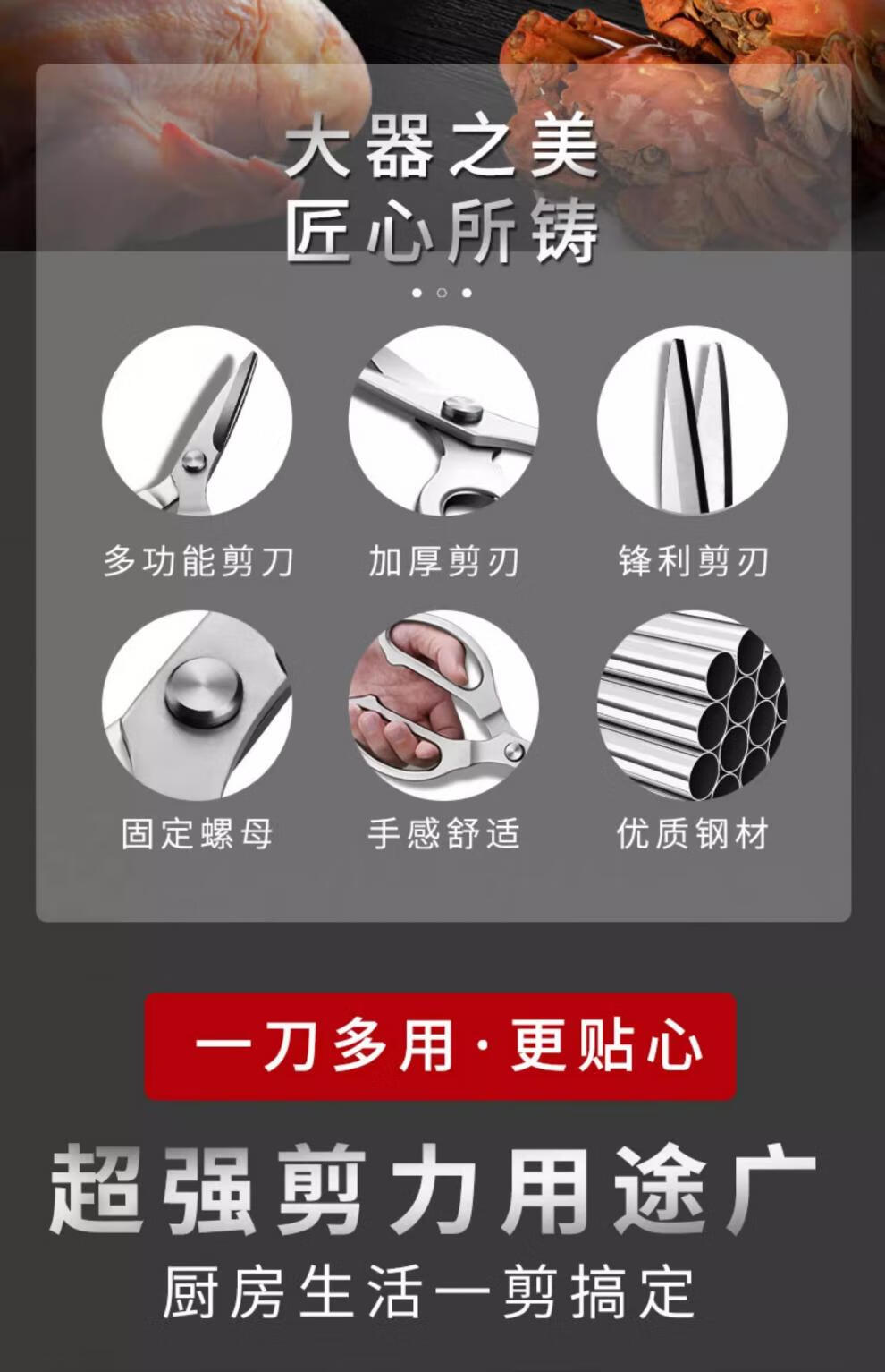 京厽厨房剪刀剪骨刀钢高硬度锋利骨剪鸭鹅骨头专用不锈钢家用食物剪 升级加厚/不锋利包赔钢强力剪