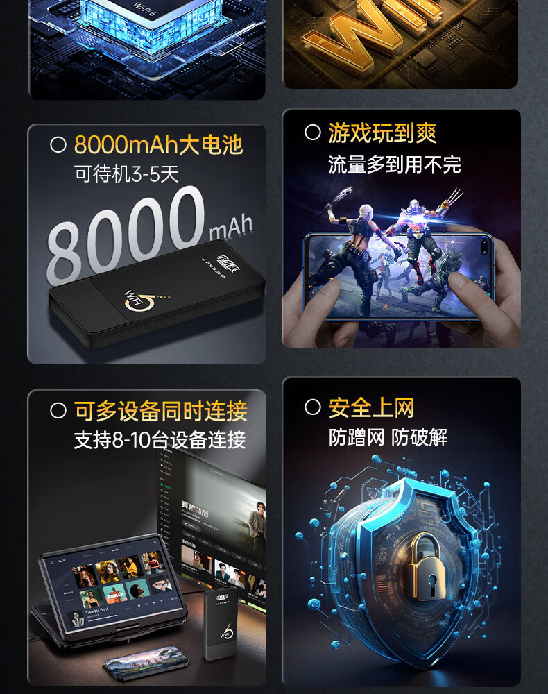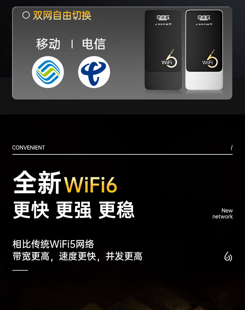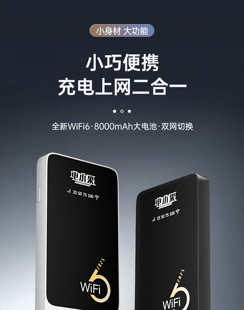 电小果随身wifi移动无线wifi6免插卡【无需预存】便携式4G设备全国通用流量2025新款路由器车载 京仓【当日/次日达】黑色双网切换旗舰版可当充电宝