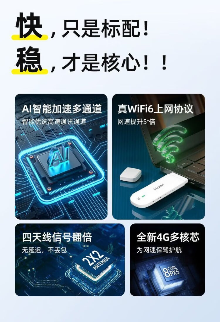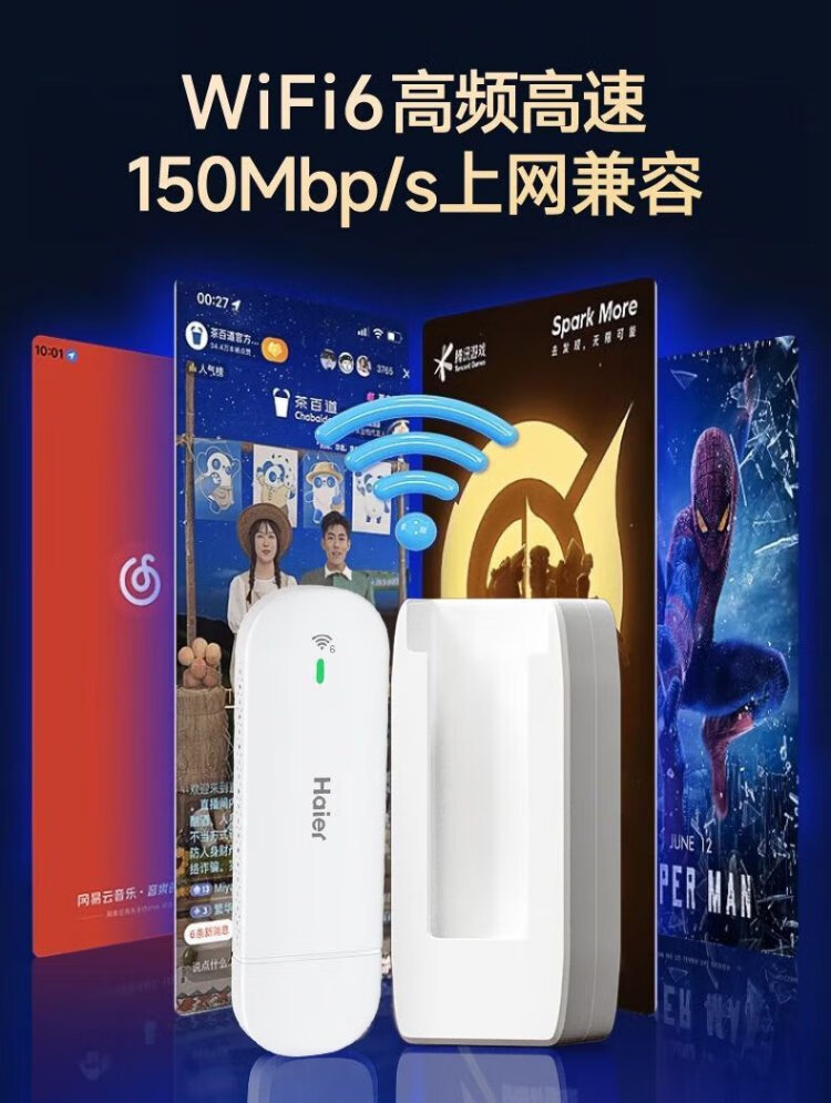 Haier portable wifi mobile wireless network portable 4g card-free portable universal car Haier SMIC microchip + with charging compartment Haier traffic management-Shadanlan experience traffic-3 major networks