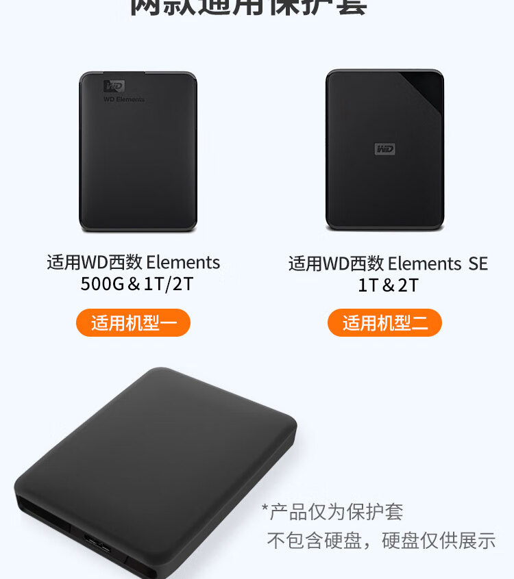Huafang is more suitable for new elements WDElementsSE mobile hard drive sleeve 1/2T silicone protective sleeve 4T new elements all-inclusive 1T/2T black