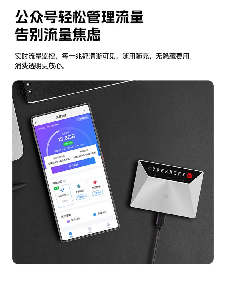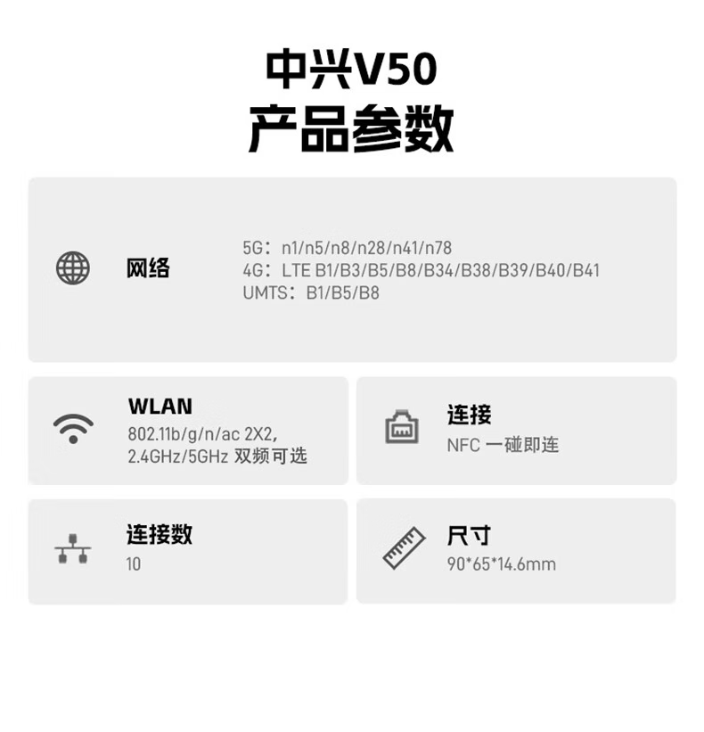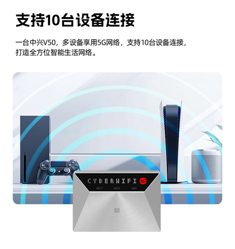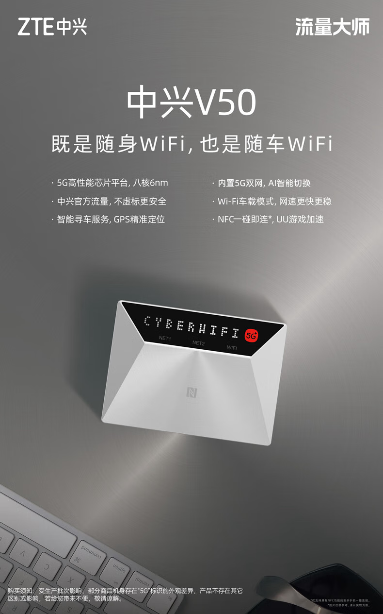ZTE (ZTE) V50 Portable Mobile WiFi 5G Card-free Mobile Router Portable Home Internet Card Gigabit Wireless Broadband Laptop Universal Traffic 2025 Model Cold Light Silver