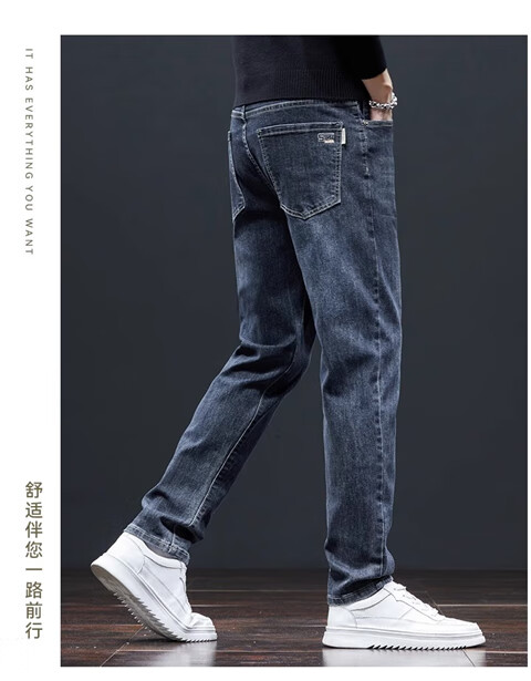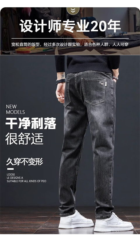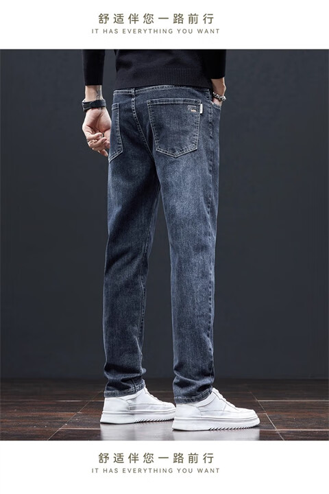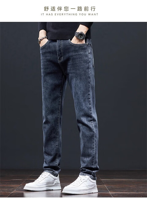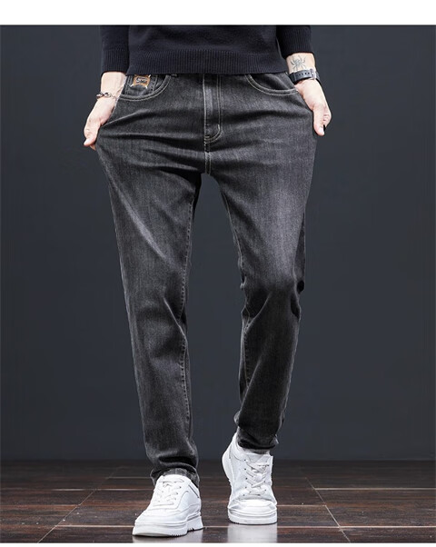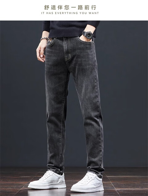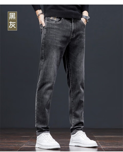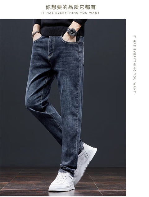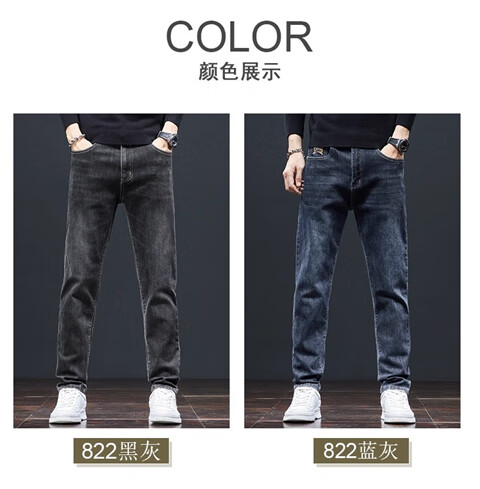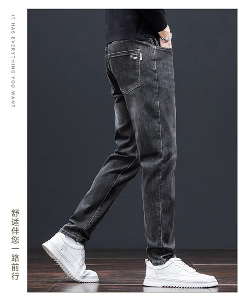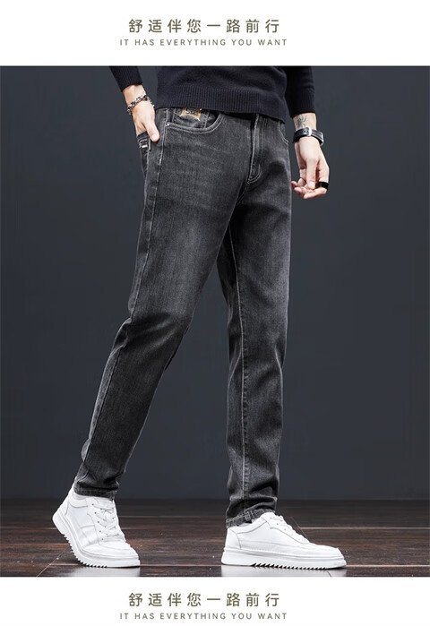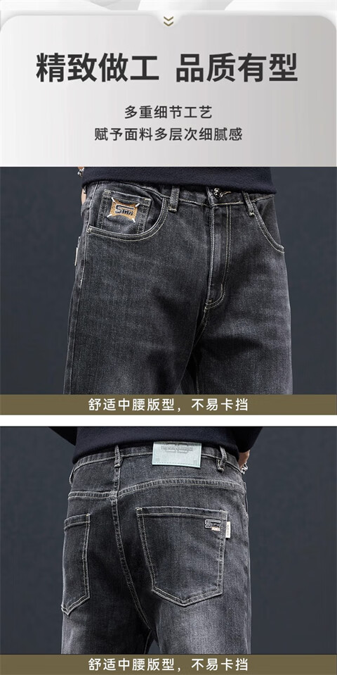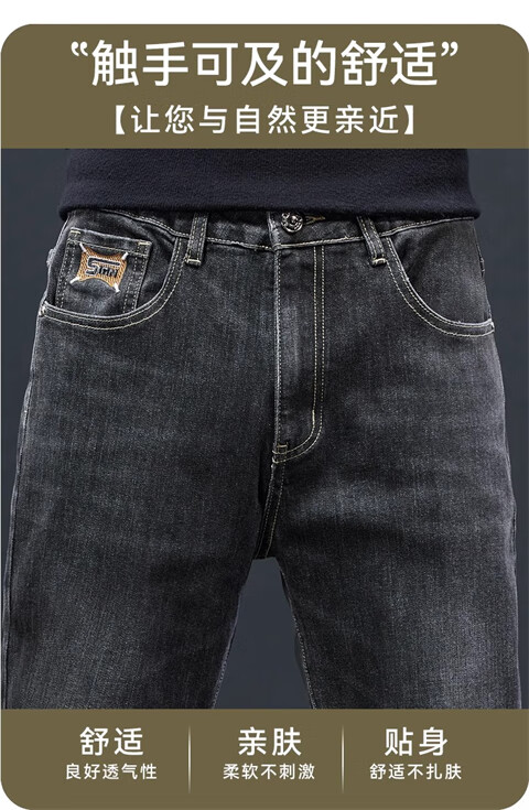 Autumn and winter slim men's jeans business stretch 2025 new wear-resistant trendy versatile popular comfortable pants 826 black gray velvet thickened 33 recommended 140-150Jin Jin equals 0.5 kg