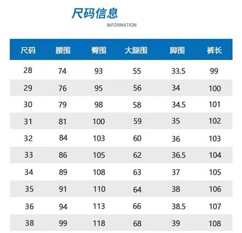 USA(inch) 28-30 30-32 32-34 34-38 38-42