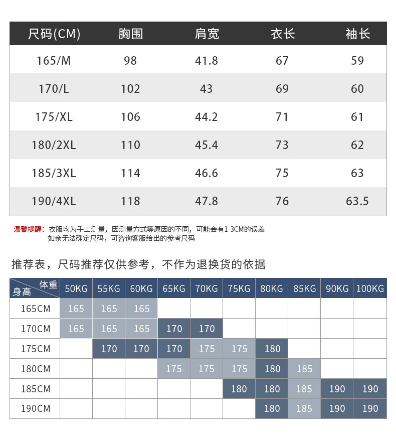 China (cm) 160-165/84-86 165-170 / 88-90 167-172 / 92-96 168-173 / 98-102 170-176 / 106-110