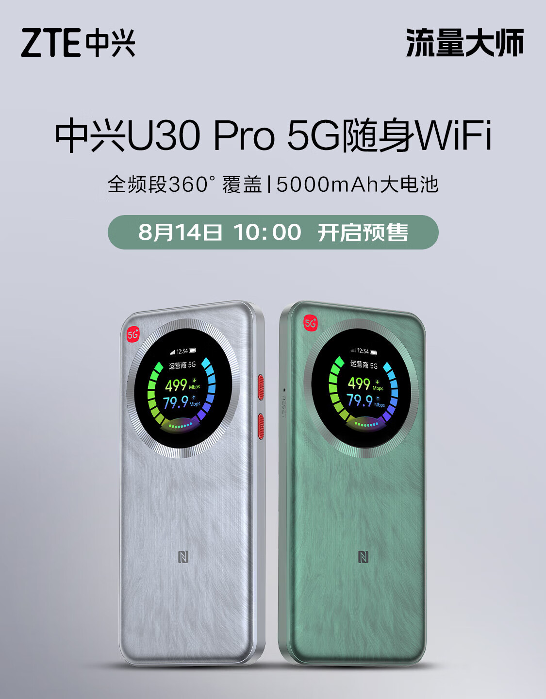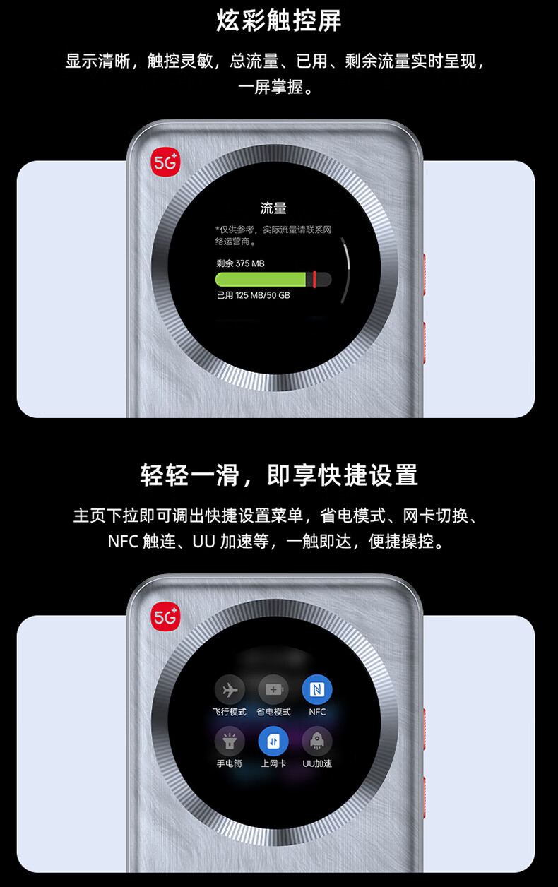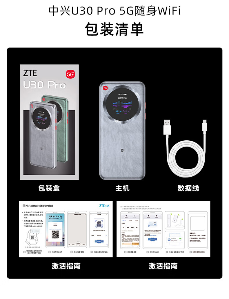 ZTE ZTE U30Air/U30Pro5G versión de tarjeta WiFi portátil móvil enrutador inalámbrico NFC se conecta al dormitorio transmisión en vivo del automóvil con un solo toque Versión de tarjeta de red dual 5G-U30 Pro Glacier Silver