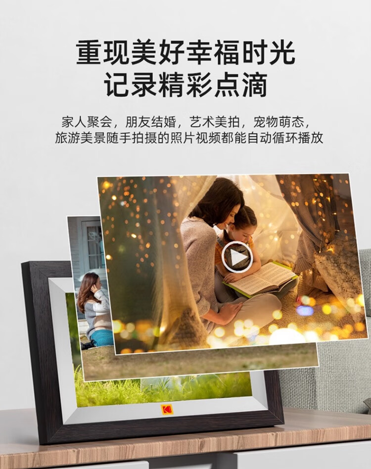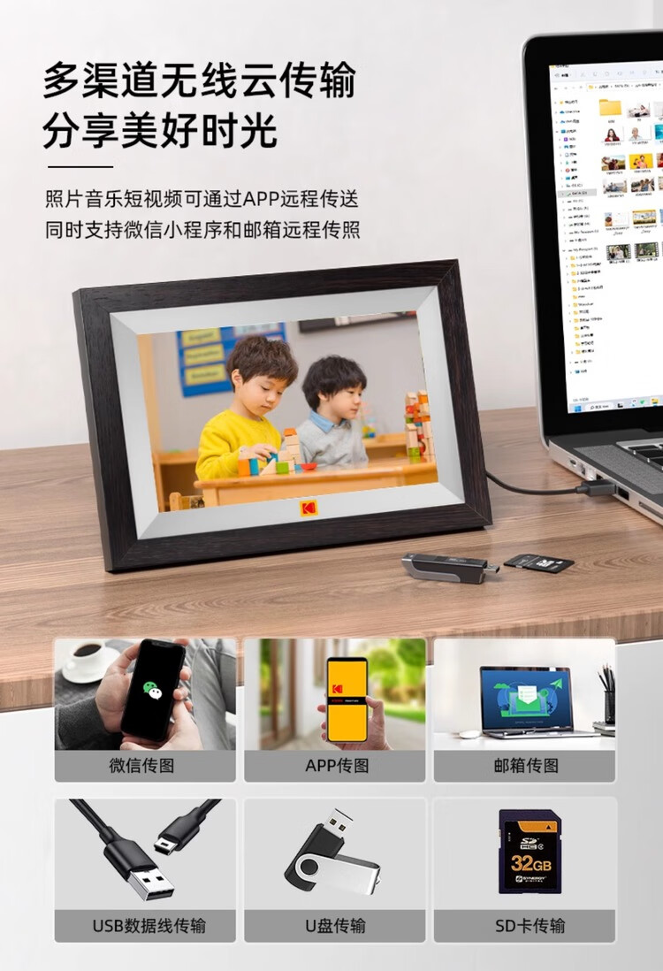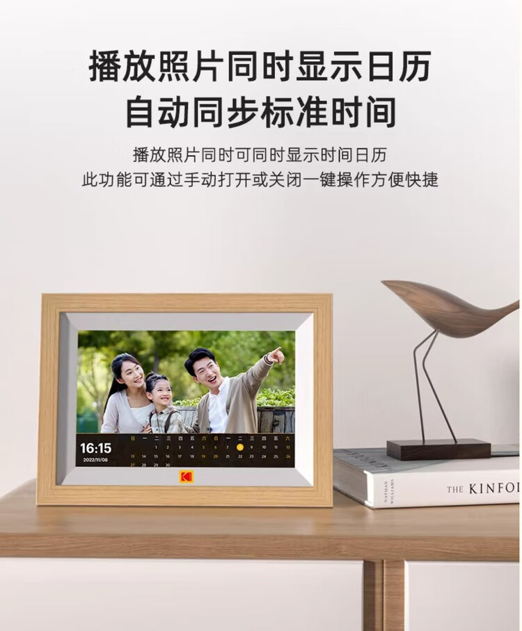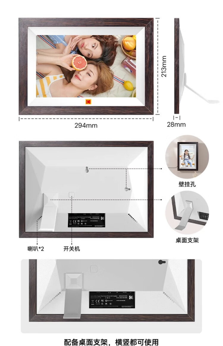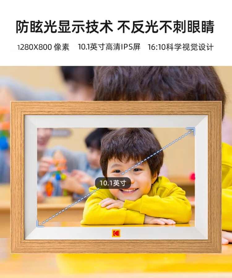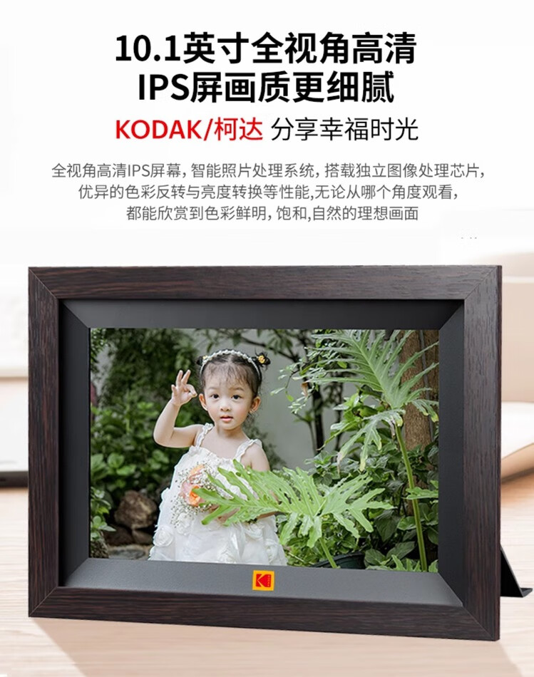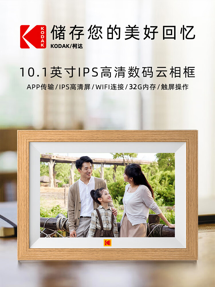KODAK Kodak 1012W álbum de fotos electrónico Reproductor de pantalla táctil de 10 pulgadas hogar Imagen de alta definición foto video marco de fotos digital mesa de visualización aniversario de boda regalo de los padres Modelo de pantalla táctil WiFi de 10,1 pulgadas_marrón blanco 32G incorporado