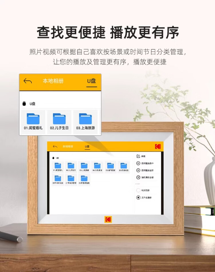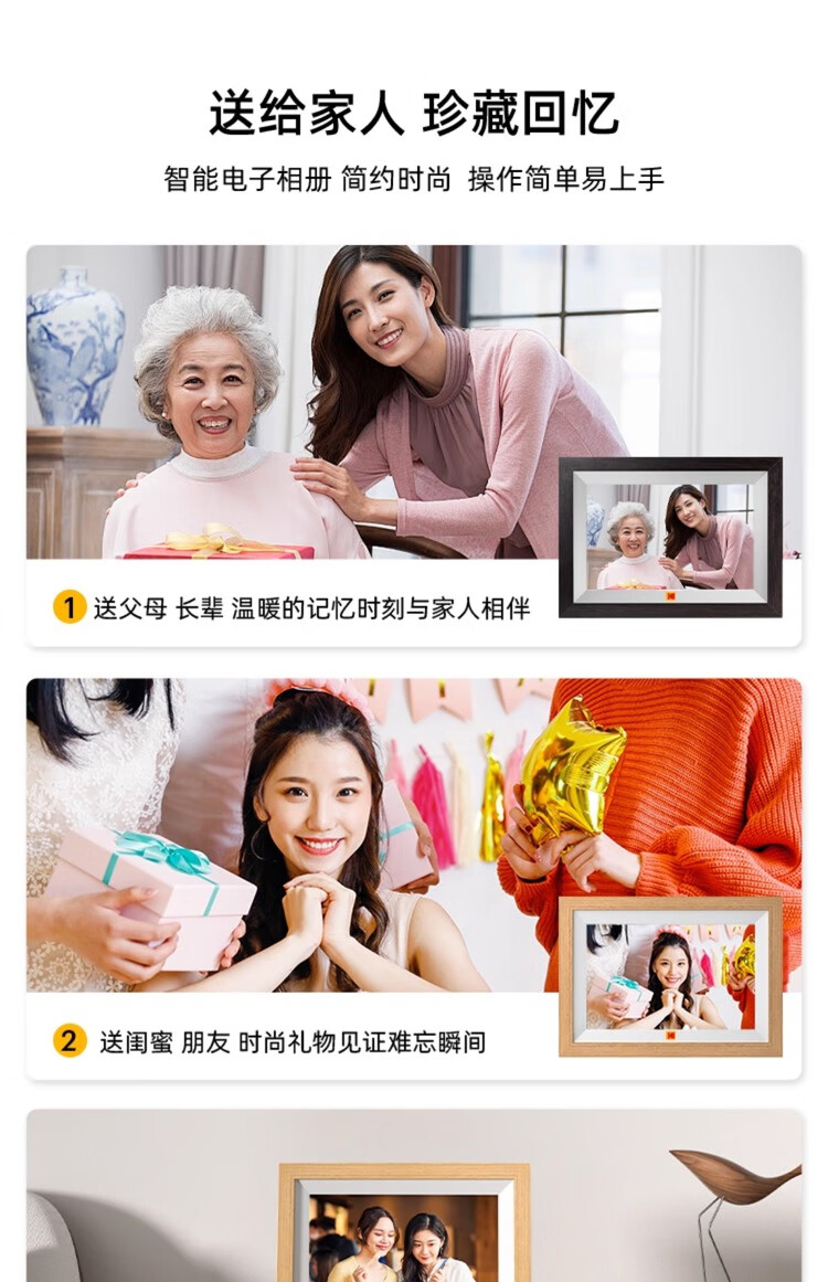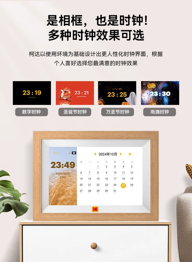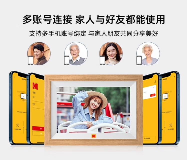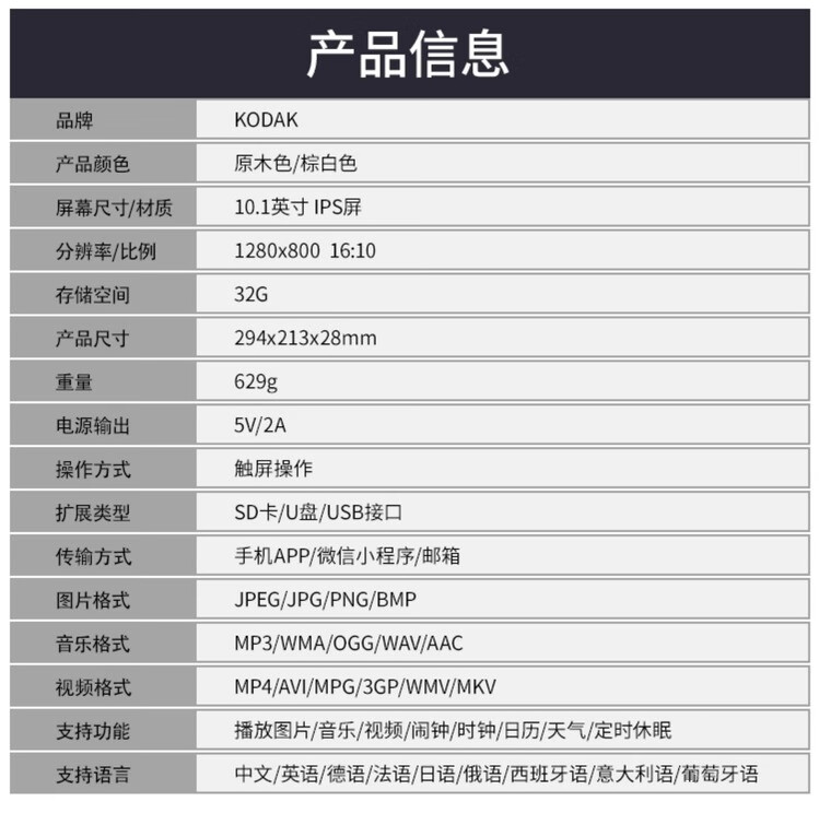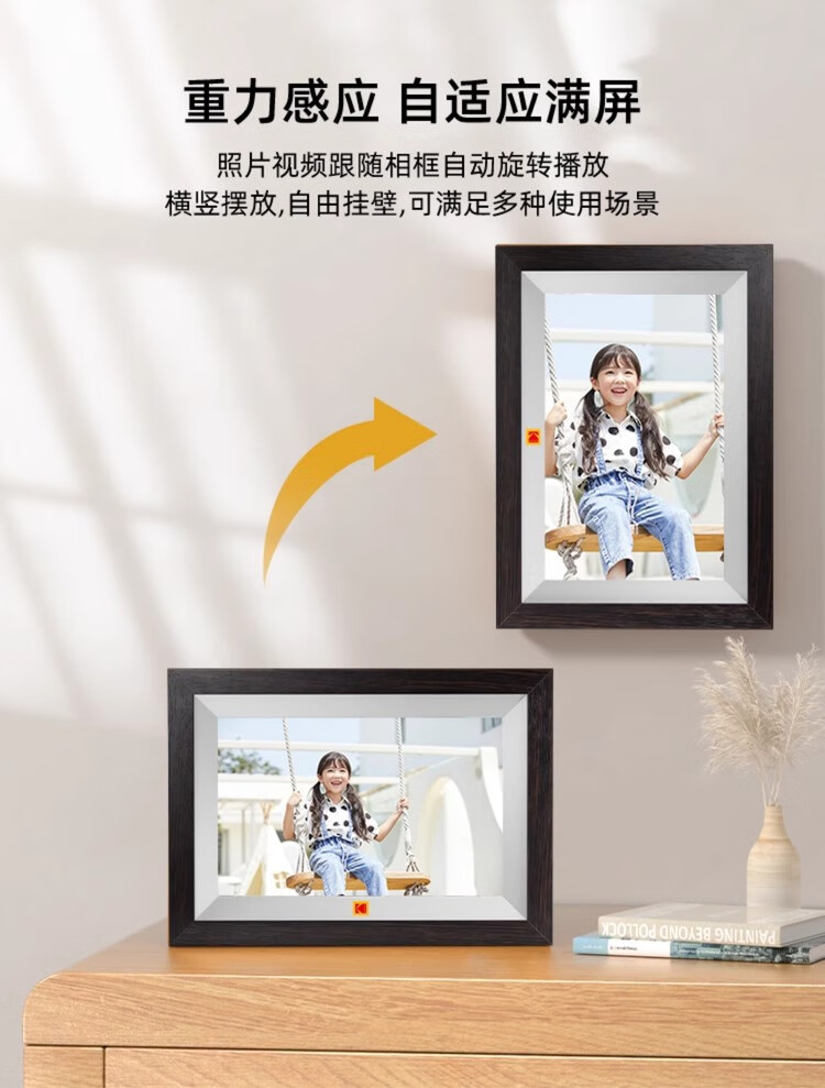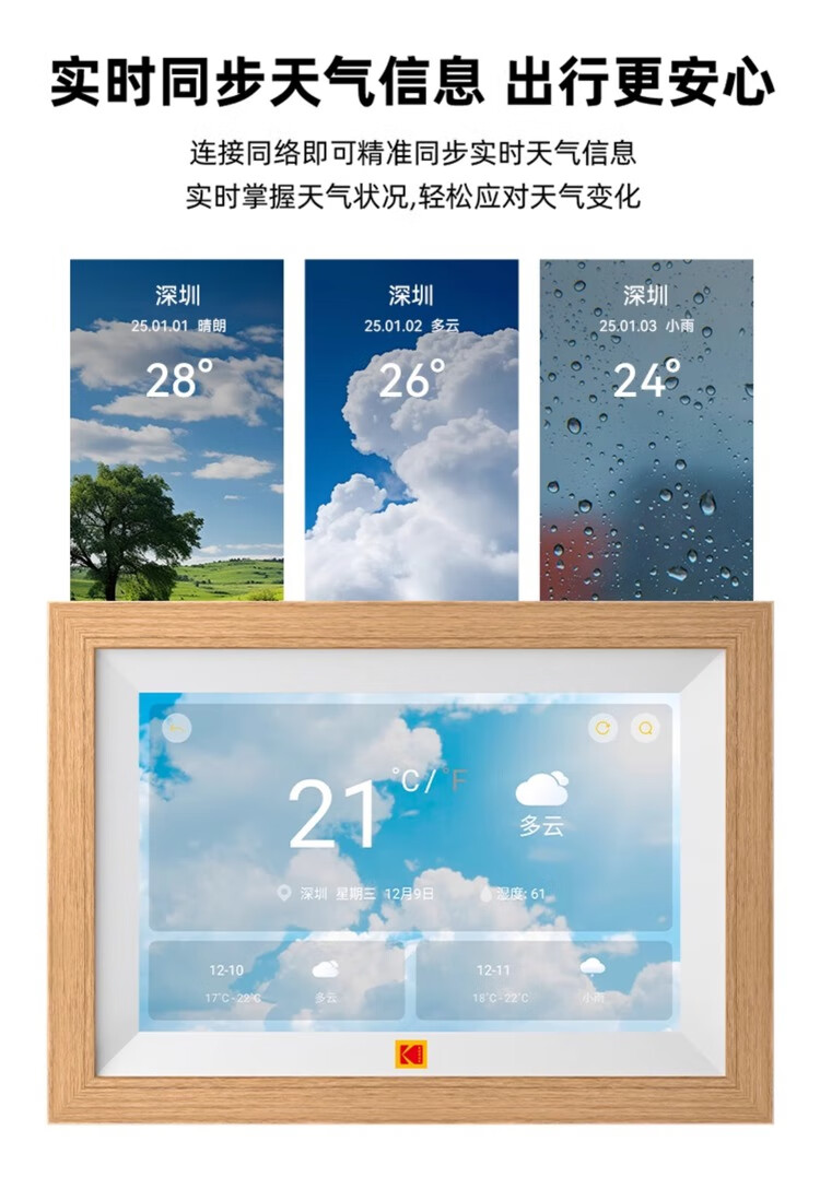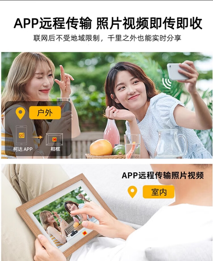 KODAK Kodak 1012W álbum de fotos electrónico Reproductor de pantalla táctil de 10 pulgadas hogar Imagen de alta definición foto video marco de fotos digital mesa de visualización aniversario de boda regalo de los padres Modelo de pantalla táctil WiFi de 10,1 pulgadas_marrón blanco 32G incorporado