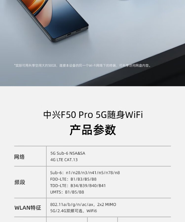 ZTE F50pro enrutador inalámbrico móvil wifi portátil 5G tarjeta de red inalámbrica Gigabit de modo dual tarjeta enchufable tres Netcom tráfico nacional ilimitado de alta velocidad 2025 nueva versión de tarjeta enchufable F50 pro