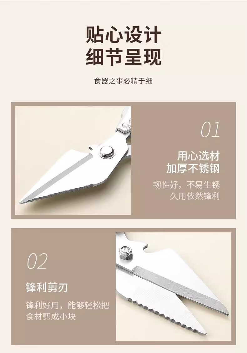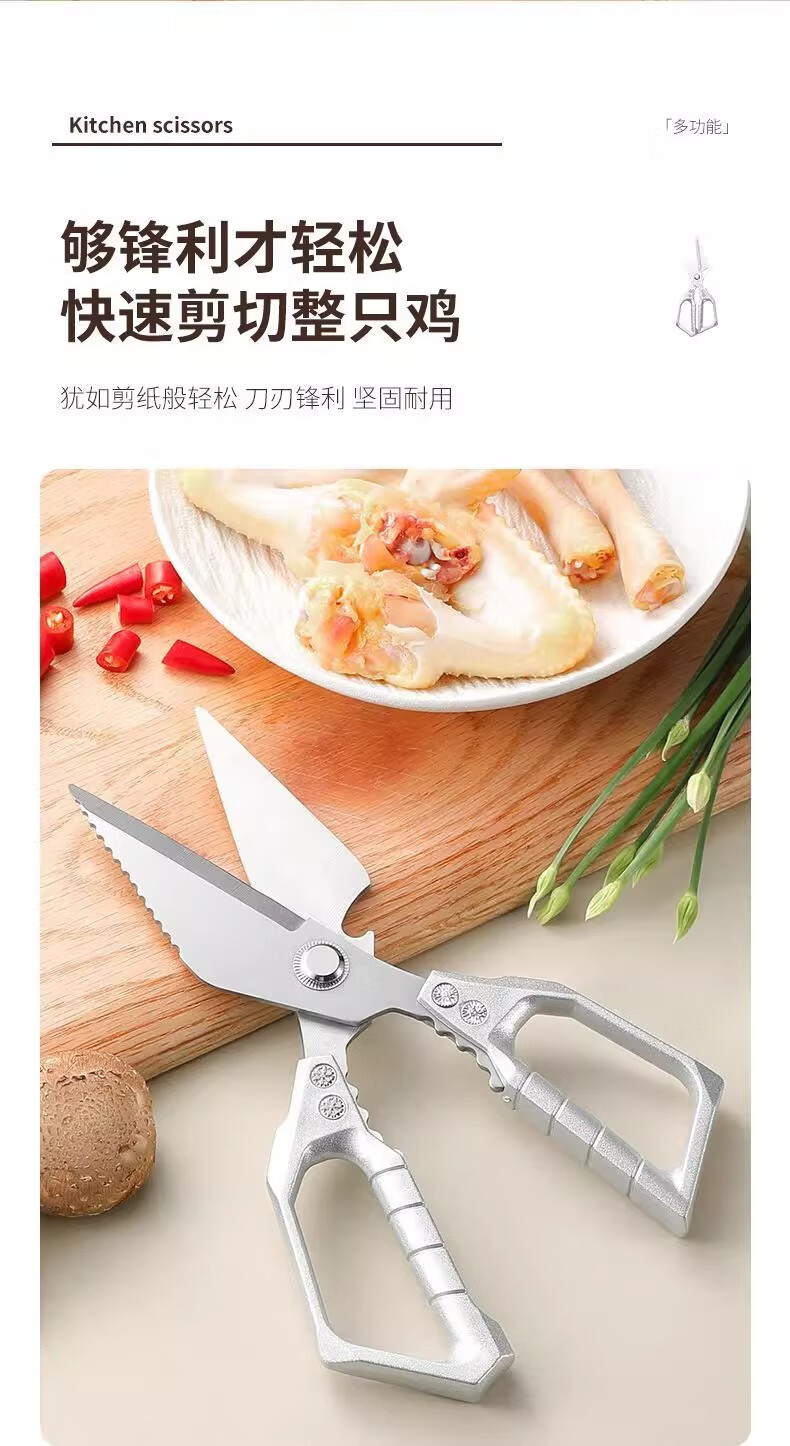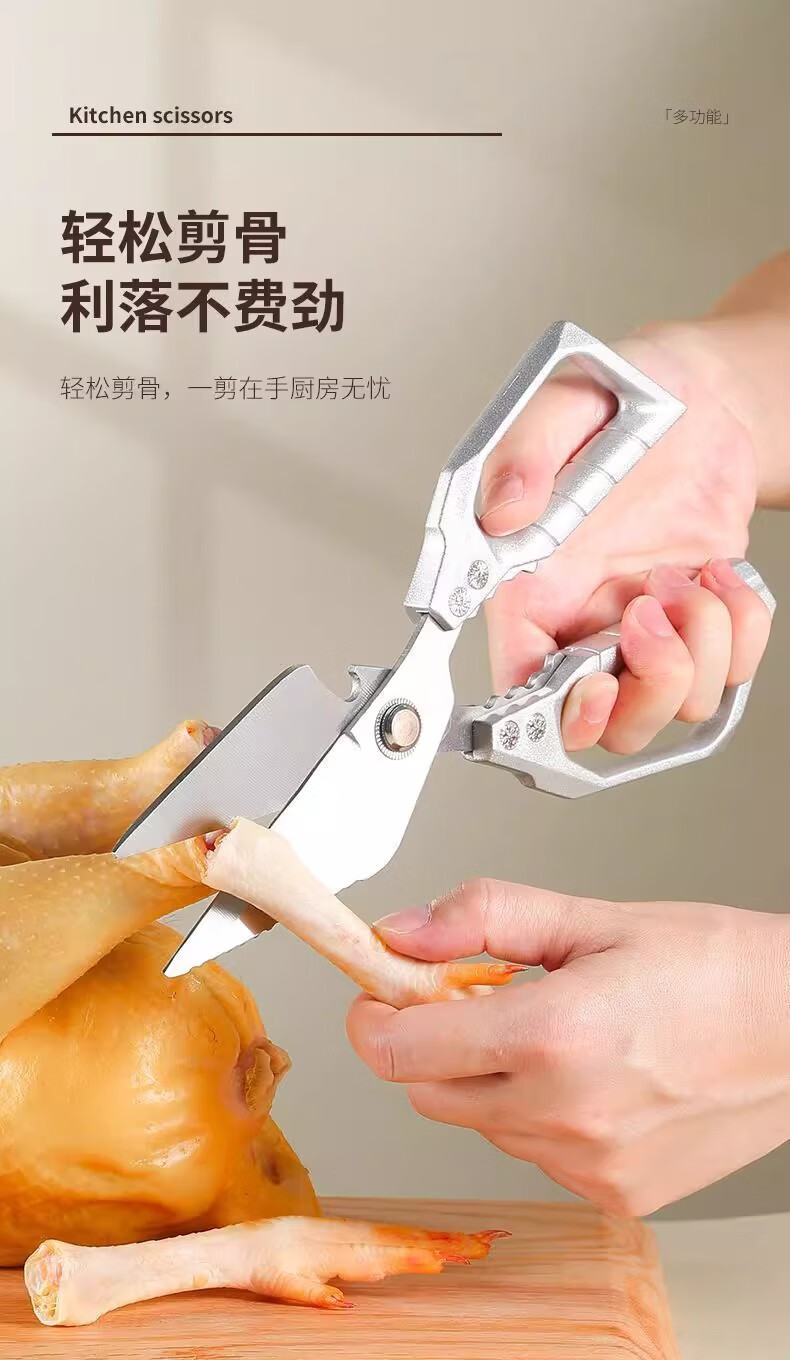 Zhang Xiaoquan Küchenschere, hohe Härte, scharfe und leistungsstarke Hühnerknochenschere, komplett aus Edelstahl, spezielle Schere mit großem Kopf zum Schneiden von Hühner-, Enten- und Gänseknochen, 1 Paar, gewöhnliche Haushaltsschere