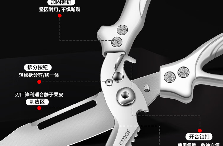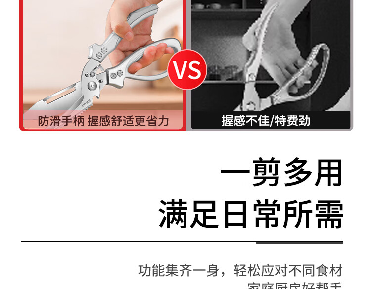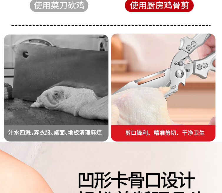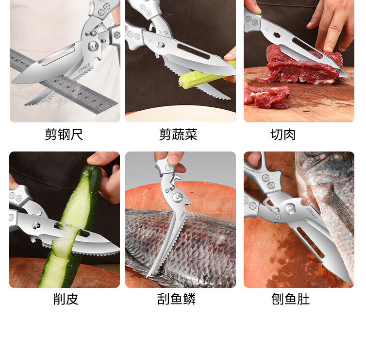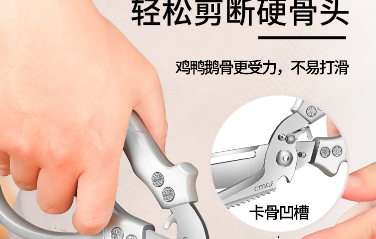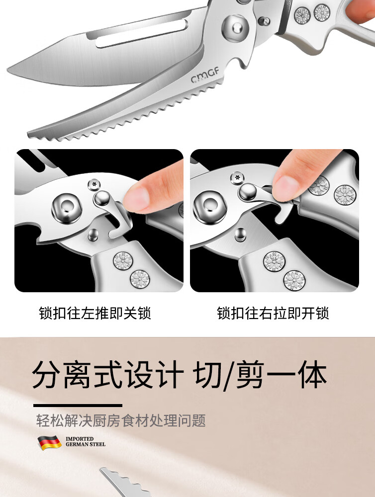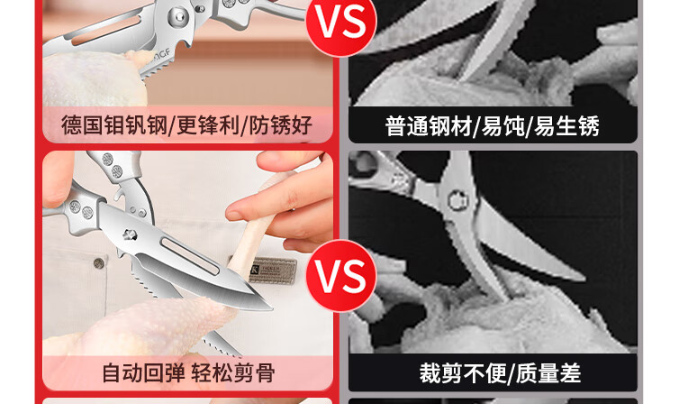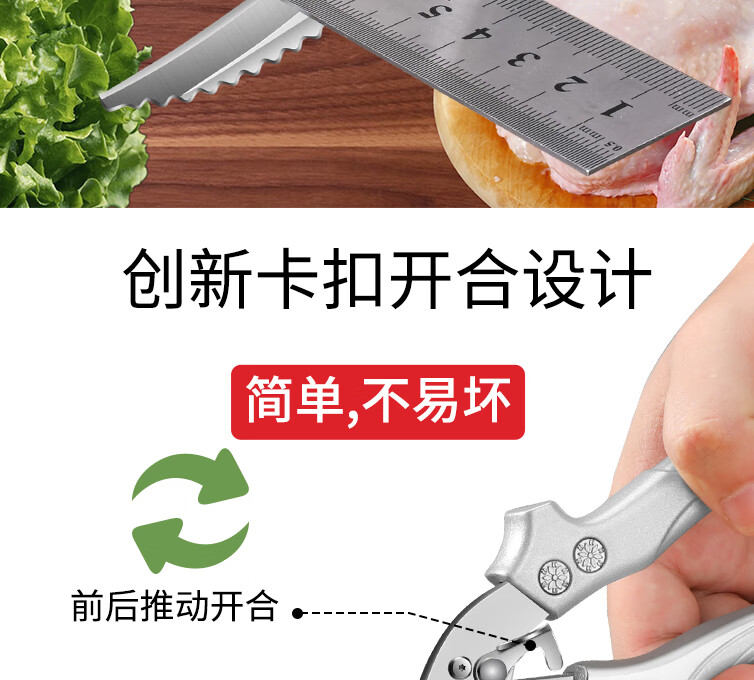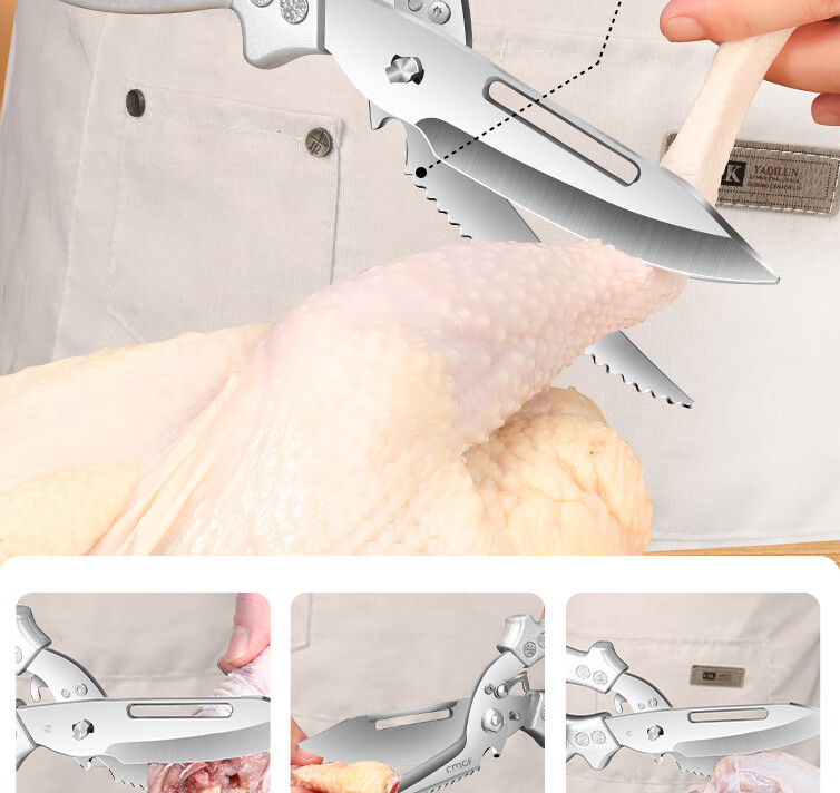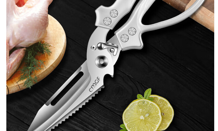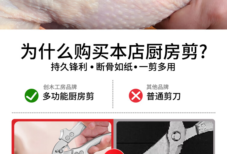 Chuangjingxin wählt deutsche Qualitätsküchenscheren, Küchenscheren, multifunktionale Haushaltsscheren mit starken Knochen, ultrascharfen, lebensmittelspezifischen Edelstahl, verbesserte Verdickung und nicht scharfe, starke Knochenscheren inklusive.