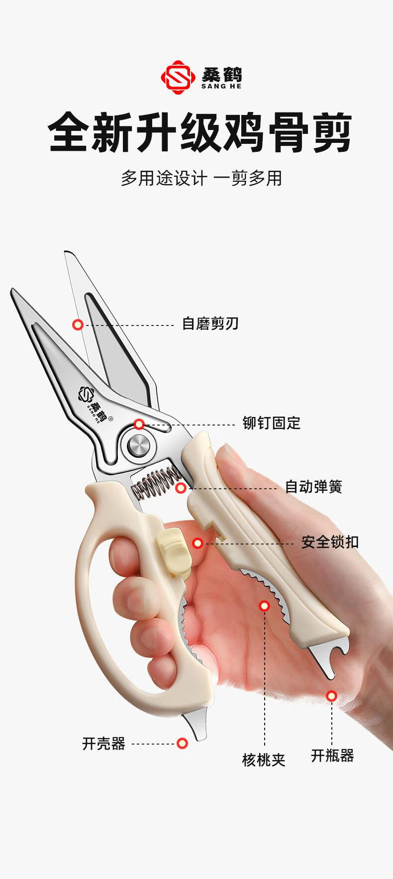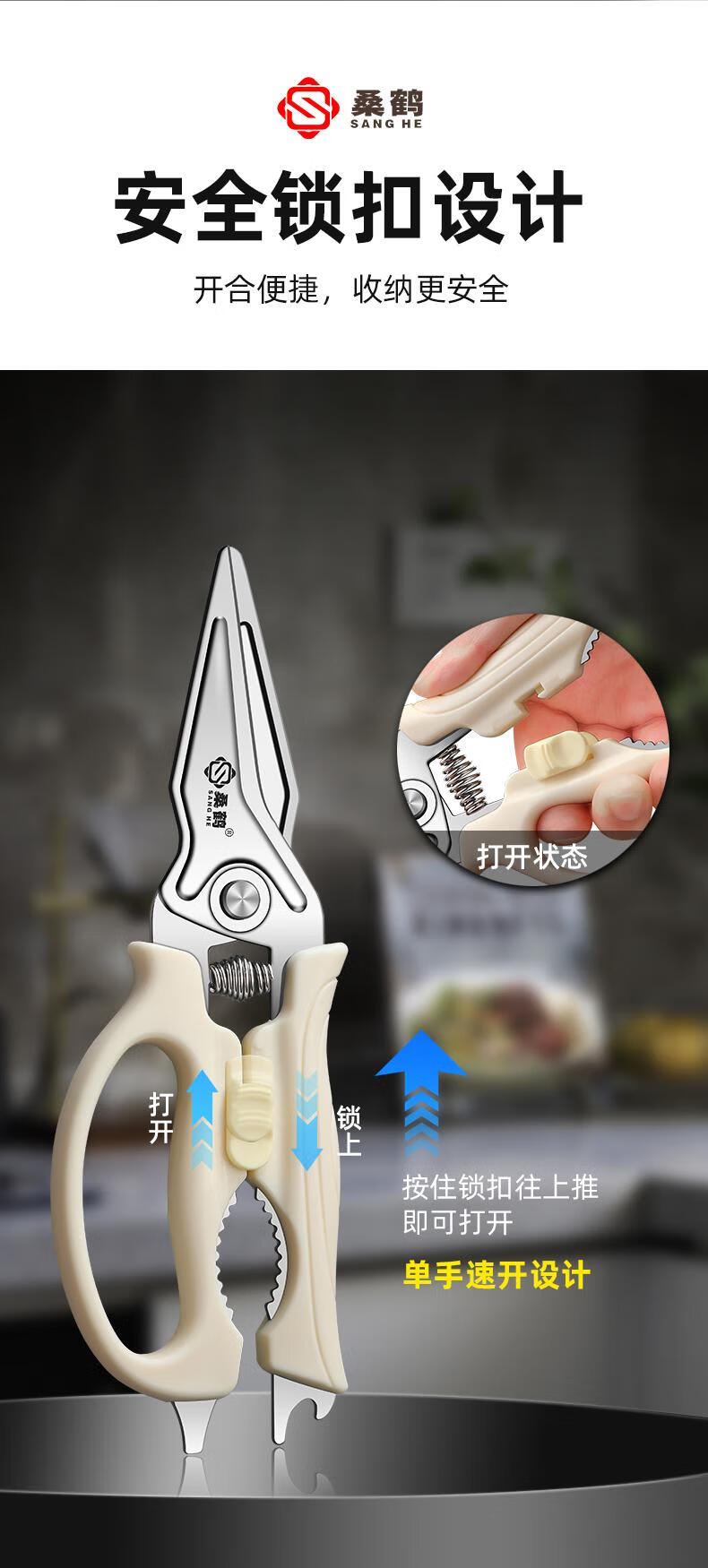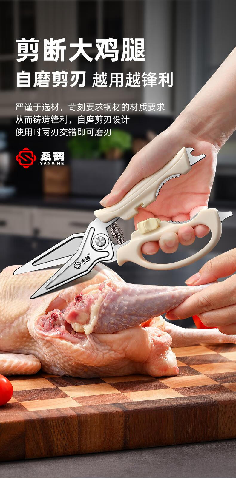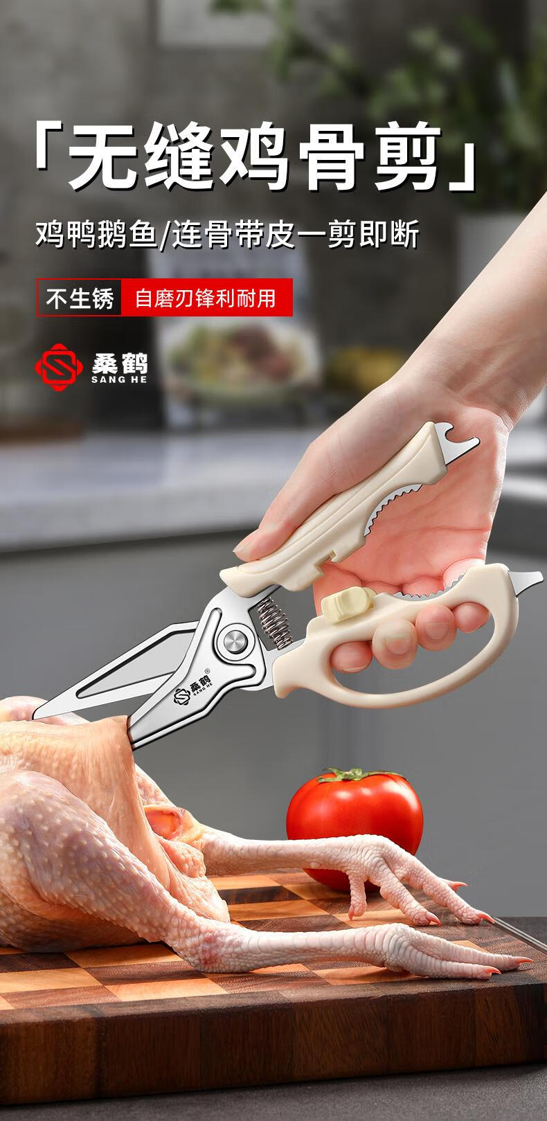 Sanghe powerful chicken bone scissors, kitchen scissors, household food-grade scissors for chicken, duck and goose bones, magnetic and durable, coral pink