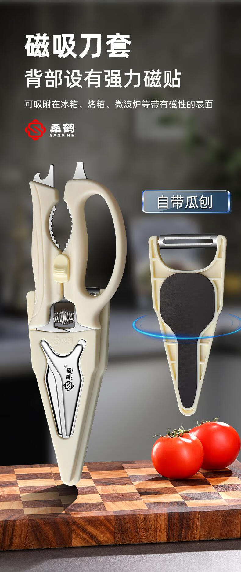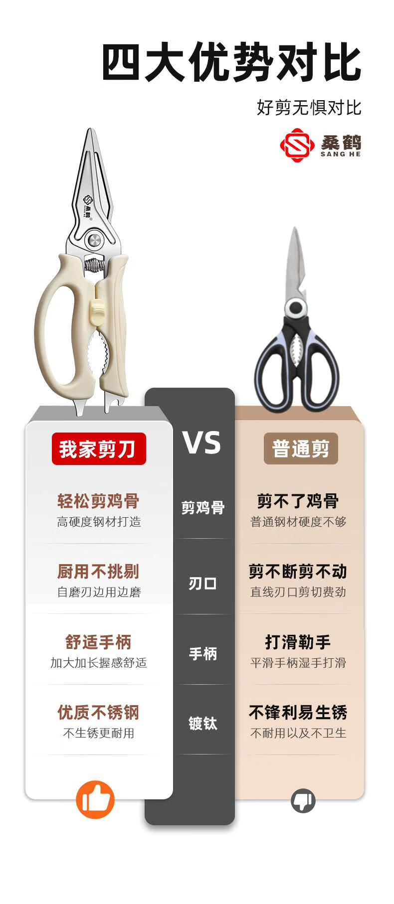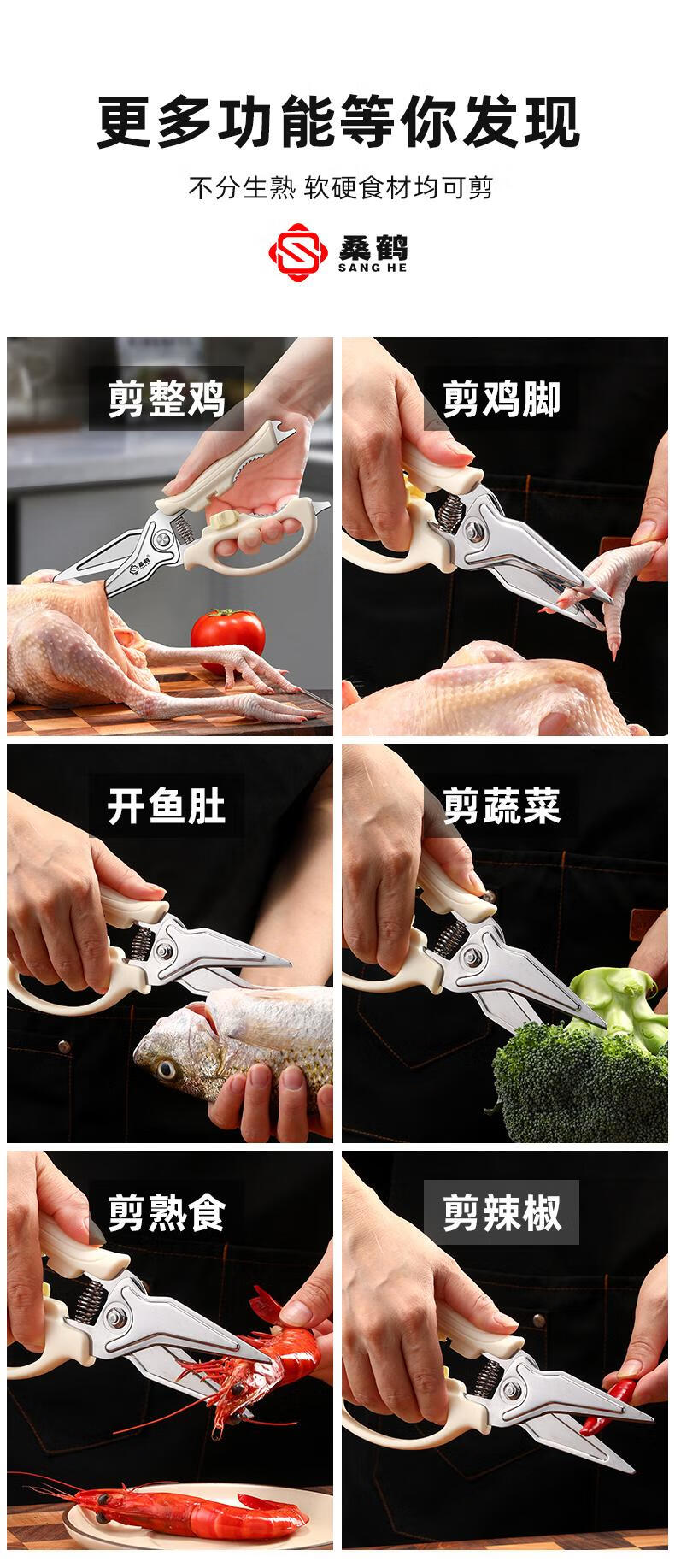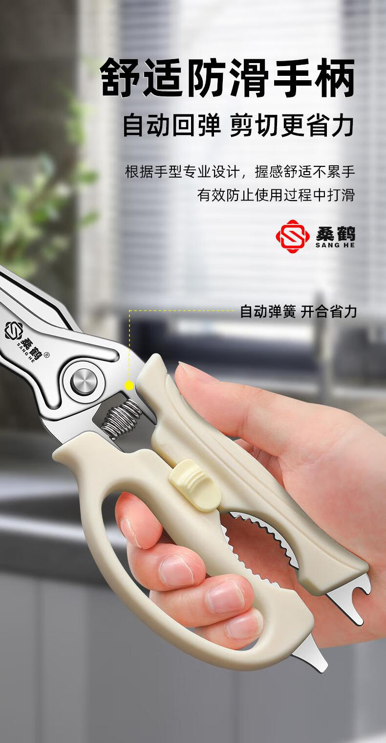 Sanghe powerful chicken bone scissors, kitchen scissors, household food-grade scissors for chicken, duck and goose bones, magnetic and durable, coral pink